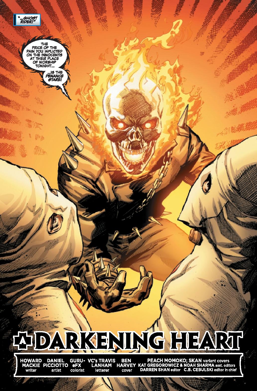 DANNY KETCH IS BACK! Flashback to a time when innocent blood was spilled, a Spirit of Vengenace was born, and Danny Ketch found himself transformed into the GHOST RIDER! A gang war is breaking out across New York City, with Ghost Rider caught in the middle! But if it’s just rival gangs killing each other, does Ghost Rider need to get involved? Join us for an untold tale written by Danny Ketch co-creator HOWARD MACKIE and artist DANIEL PICCIOTTO!