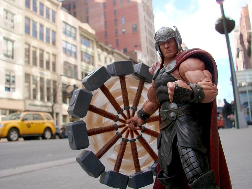 A Diamond Select Toys release! This figure is worthy! Descending from Asgard, this highly detailed figure of Thor, God of Thunder, features multiple interchangeable parts, including Mjolnir, a spinning hammer effect and an alternate unhelmeted head. Measuring approximately 8 inches tall, this fully poseable figure has 16 points of articulation, and comes packaged in display-ready Select action figure packaging. Sculpted by Gentle Giant Studios. Formerly a Disney Store exclusive. (Item #JUN201793, SRP: $29.99)