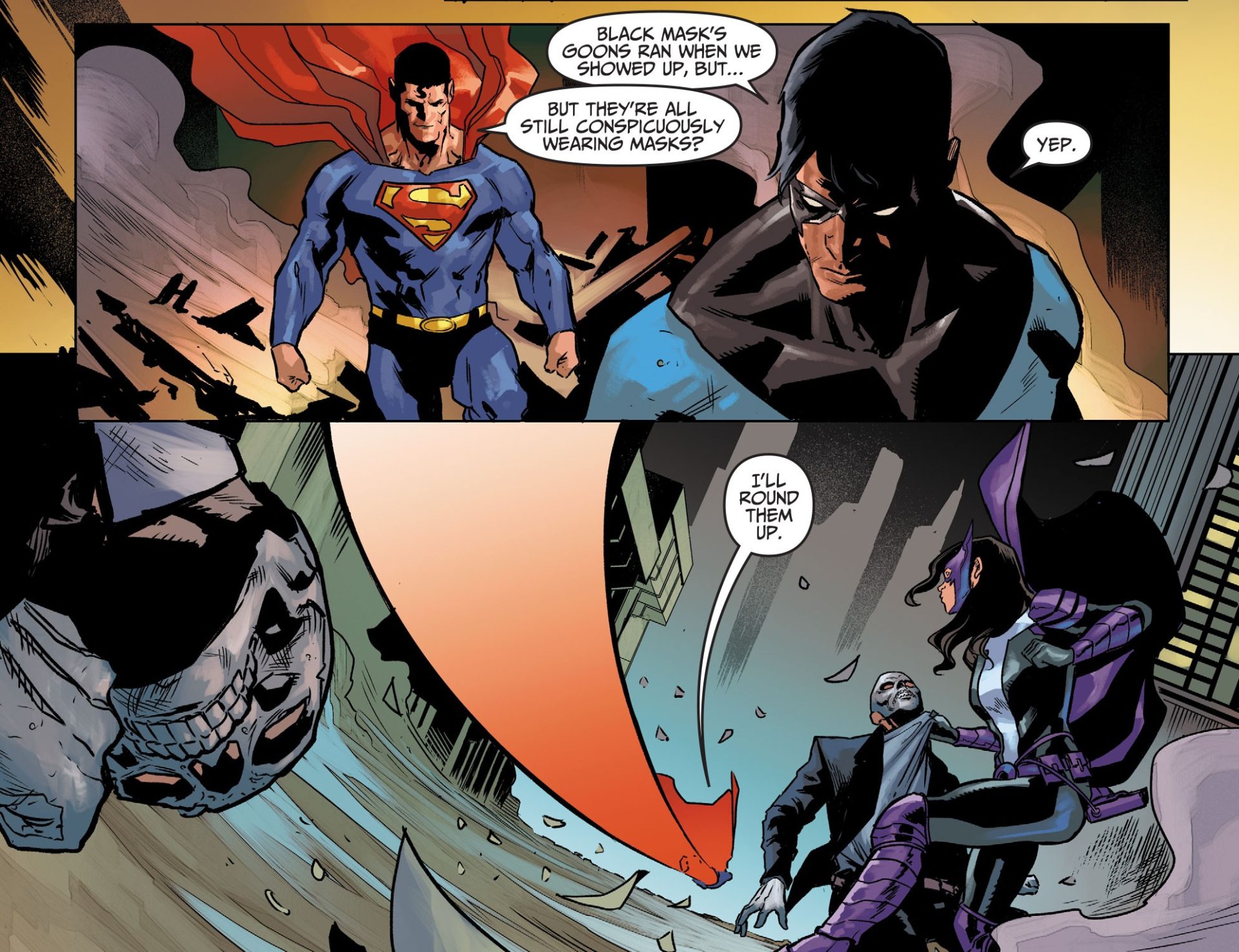 But, Taylor makes sure to add some humor to it all too. As mentioned above, the back and forth between Andre recounting the story and the Joker taking his stand on Nazis is a brief moment of levity. It also just draws a line that Nazis suck and there’s no siding with them.