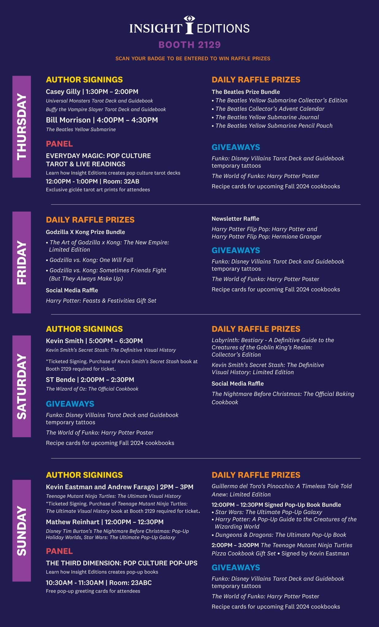 In addition to signings, every day of the show brings a new raffle opportunity. Visitors can simply scan their badge to be entered to win a ton of different prizes, including bundles of Insight’s highly collectible Limited Edition titles like The Art of Godzilla x Kong: The New Empire, Labyrinth: Bestiary, The Beatles Yellow Submarine, and many more!