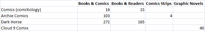 For this report, I felt it best to focus on Wednesday of the previous week, since that should be the busiest day of the week for apps since its new comic day. This report also focuses on the ranks in the United States. I’ll eventually look at the entire week down the road and expand the location. I also wanted to look at the gross income for the apps, so apps included are those where you’d purchase books. So apps like comiXology’s offerings would be included, but Marvel’s AR app isn’t.