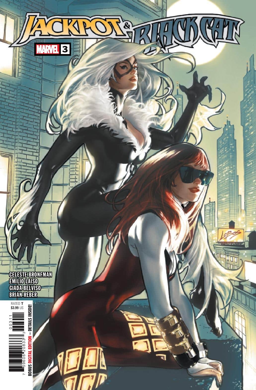 Felicia Hardy and Mary Jane Watson have always had more in common than they think, and this March, they’ll combine their wits, expertise, and superpowers to take down an emerging new threat in Jackpot and Black Cat! The four-issue limited series is written by Celeste Bronfman, who penned both Mary Jane’s first outing as Jackpot earlier this year in Amazing Spider-Man #925 and her first solo issue as Jackpot that hits stands in January. Bronfman will be joined by rising Marvel star Emilio Laiso, the acclaimed artist known for his recent work on Guardians of the Galaxy and X-Men Unlimited. The series’ covers will come from renowned artist Adam Hughes.