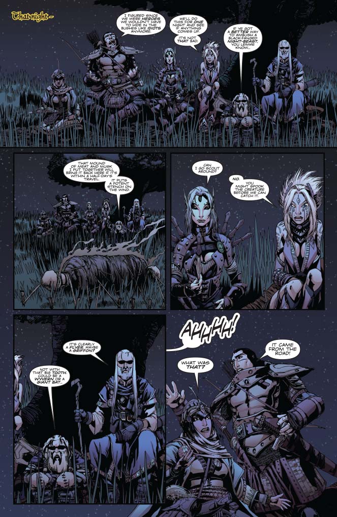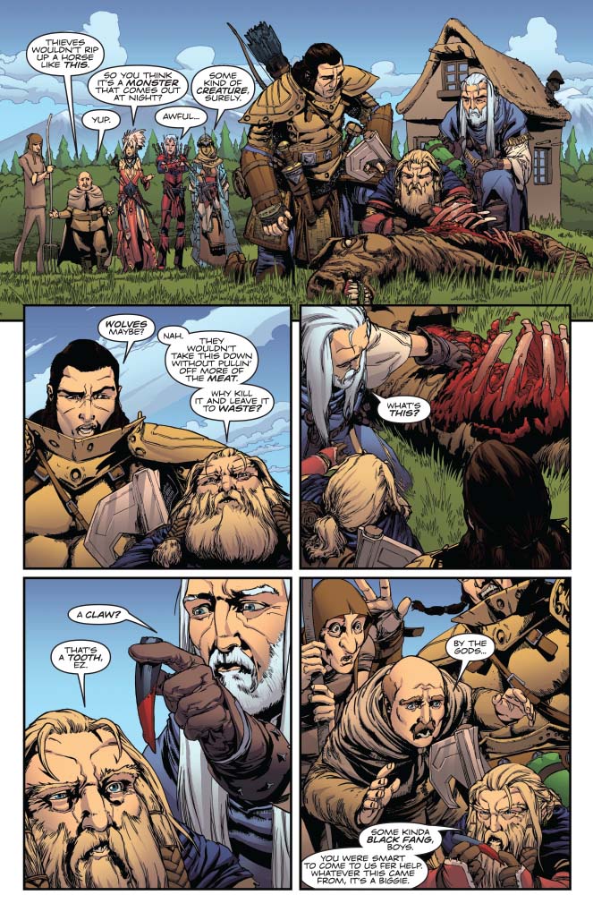 This really is a comic that caters to the Pathfinder players, but it is not a closed book to those uninitiated. Rather, it’s like watching the new Star Trek movie and getting all the references because you know the original shows, versus watching the same movie and still finding it enjoyable. It’s a stepping stone to the game. And, if you’re a Pathfinder yourself, you might find that stats and history of the dragon Scarhorn in the back-up a useful addition to any campaign.