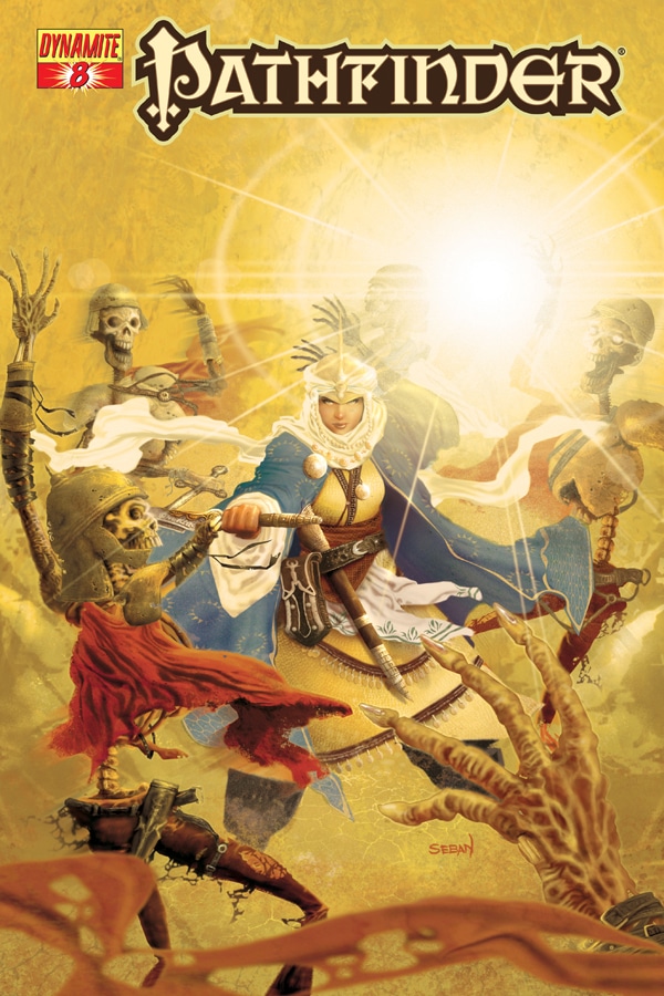 There are three ways a comic can turn out when it’s based on a fantasy RPG like Pathfinder (a better example would be the Dungeons & Dragons material from IDW): (1) utterly crap, (2) epic like Tolkien, or (3) sound like a real group playing the RPG, narrating characters, and having fun. Pathfinder #8 is the last of those three—whew, no crap here, but definitely some fun and good art!
