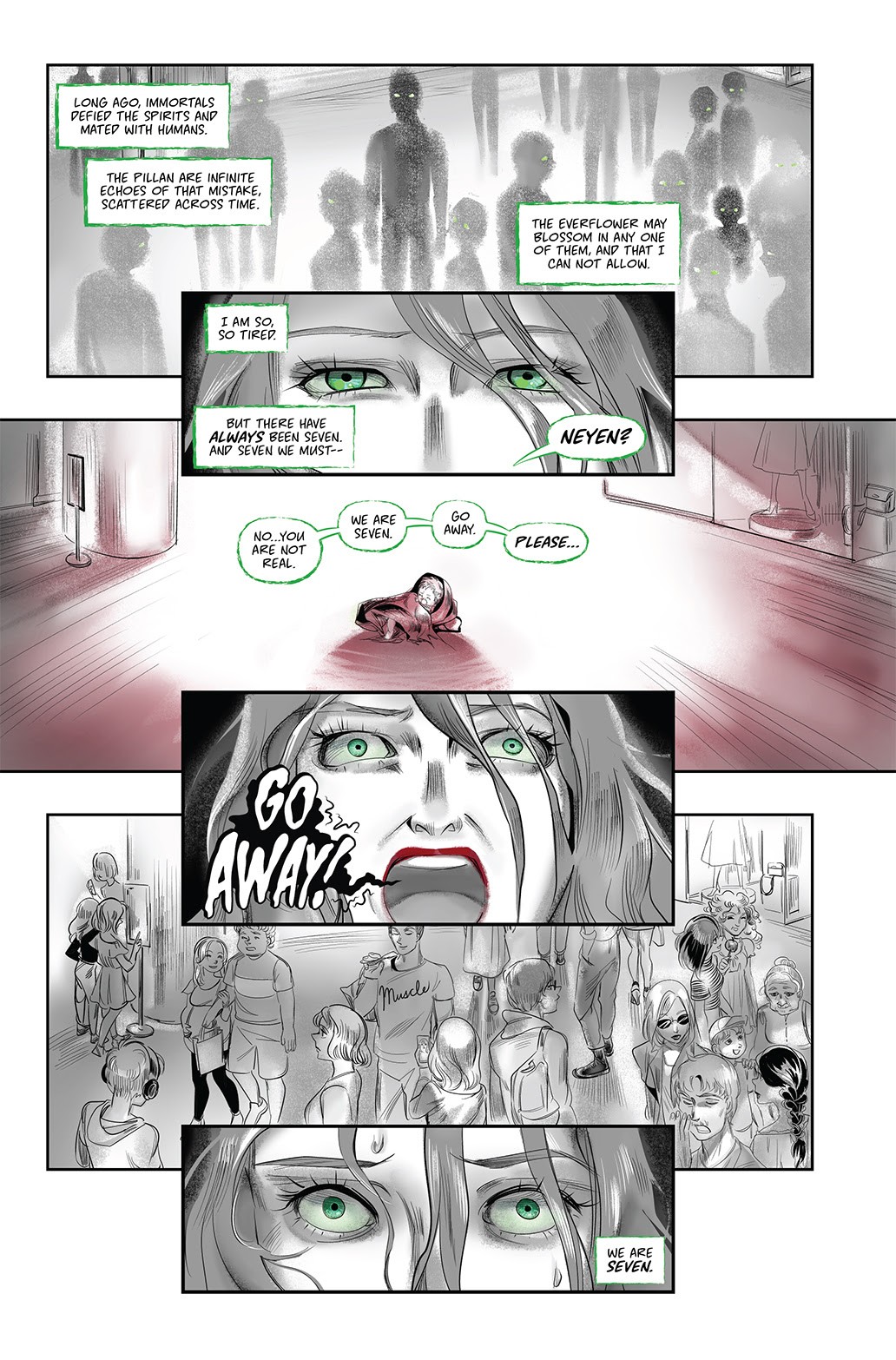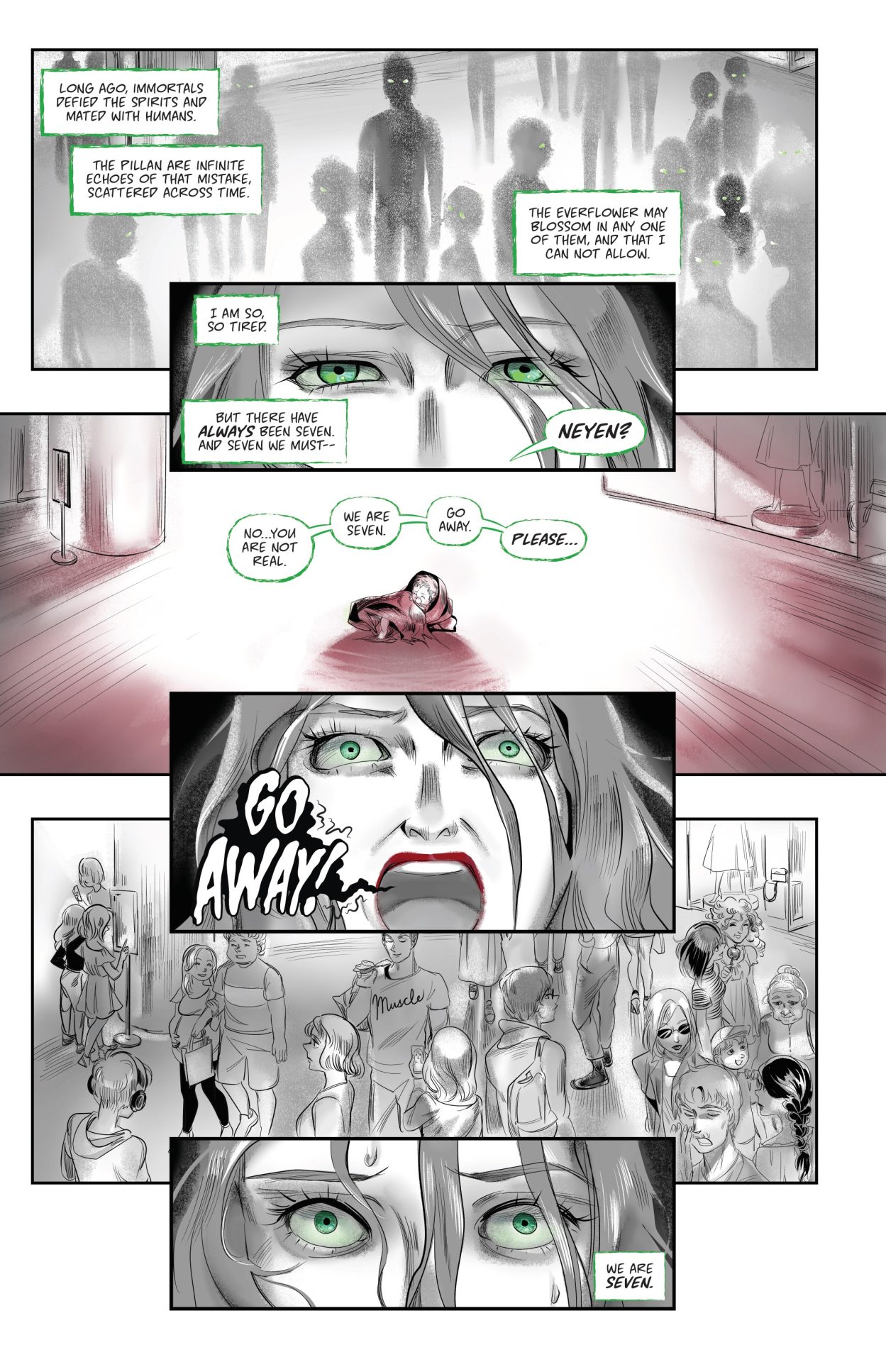 The Eighth Immortal #1 takes us to a Highlander-like world where there’s seven immortals never more and never less, until now. The immortals have over the years had children with regular humans leading to the possible creation of more but one is tasked with preventing that, sucking the essence out that causes the change. That is, until she meets a child who might be the kid she left for dead.