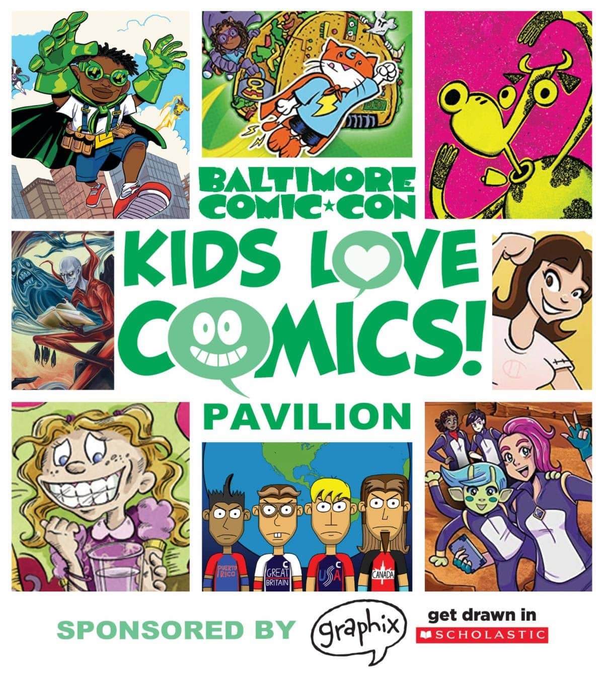 The Kids Love Comics Pavilion will once again be part of Baltimore Comic Con September 8-10, 2023 at the Baltimore Convention Center, offering how-to classes, art activities and crafts, and over 30 kids comics creators! This year, we’re ramping things up by offering Kids Love Comics Value Stamps! Kids will be able to grab the KLC Value Stamp poster at our workshop area any time during the show, then head to each of the creators’ tables to pick up a specific stamp at each table!! Tickets for adult escorts can be bought online on our website.