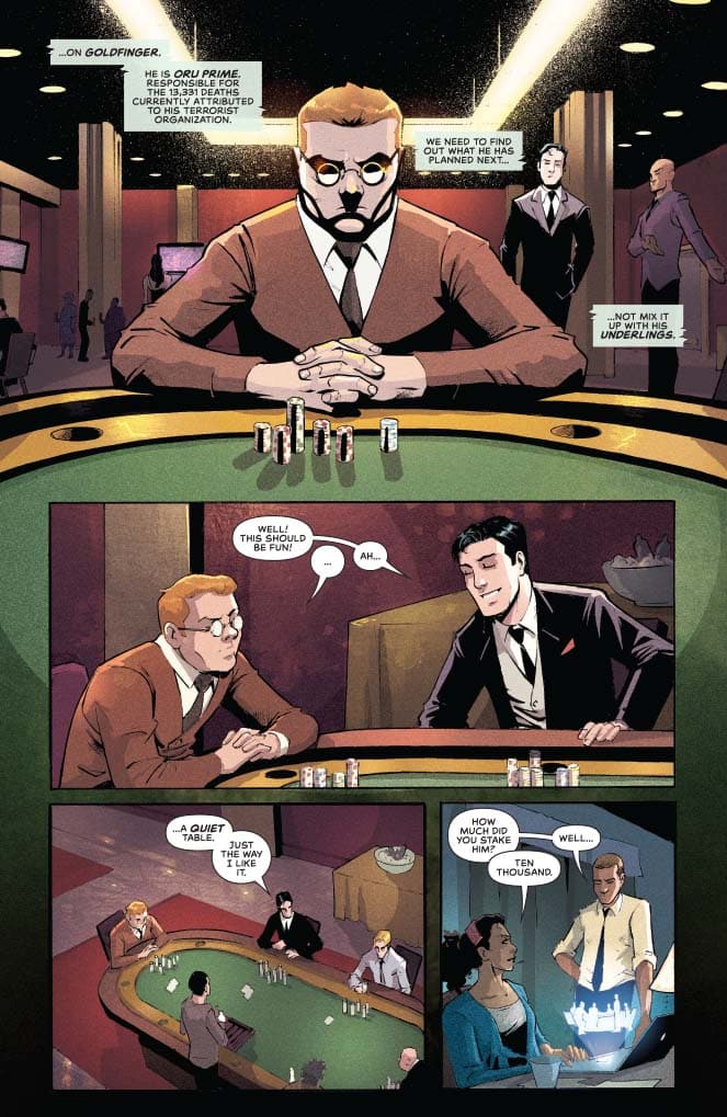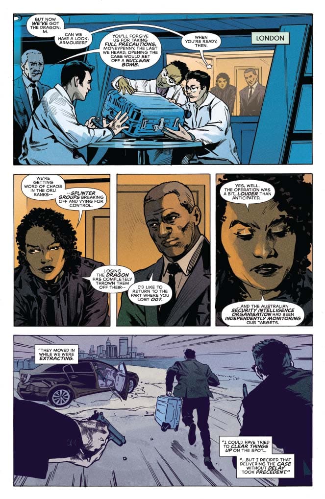 The ODD JOB epic begins in a new ongoing James Bond comic series by superstars GREG PAK (Planet Hulk, Mech Cadet Yu), MARC LAMING (Star Wars, Wonder Woman), and STEPHEN MOONEY (Grayson, Angel)! Agent 007 tracks a smuggler into Singapore to secure a dangerous case, contents unknown. But a Korean mystery man wants the case as well, for very different reasons. And if Bond and this new rival don’t kill each other, the ruthless terrorist organization known as ORU will be more than happy to finish the job!