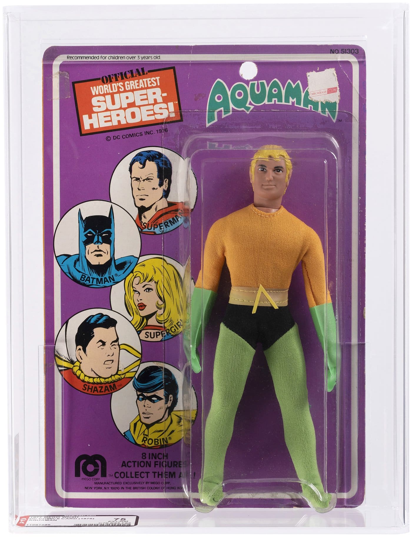MEGO WORLD’S GREATEST SUPERHEROES (1976) – AQUAMAN CARDED FIGURE AFA 75 EX+/NM