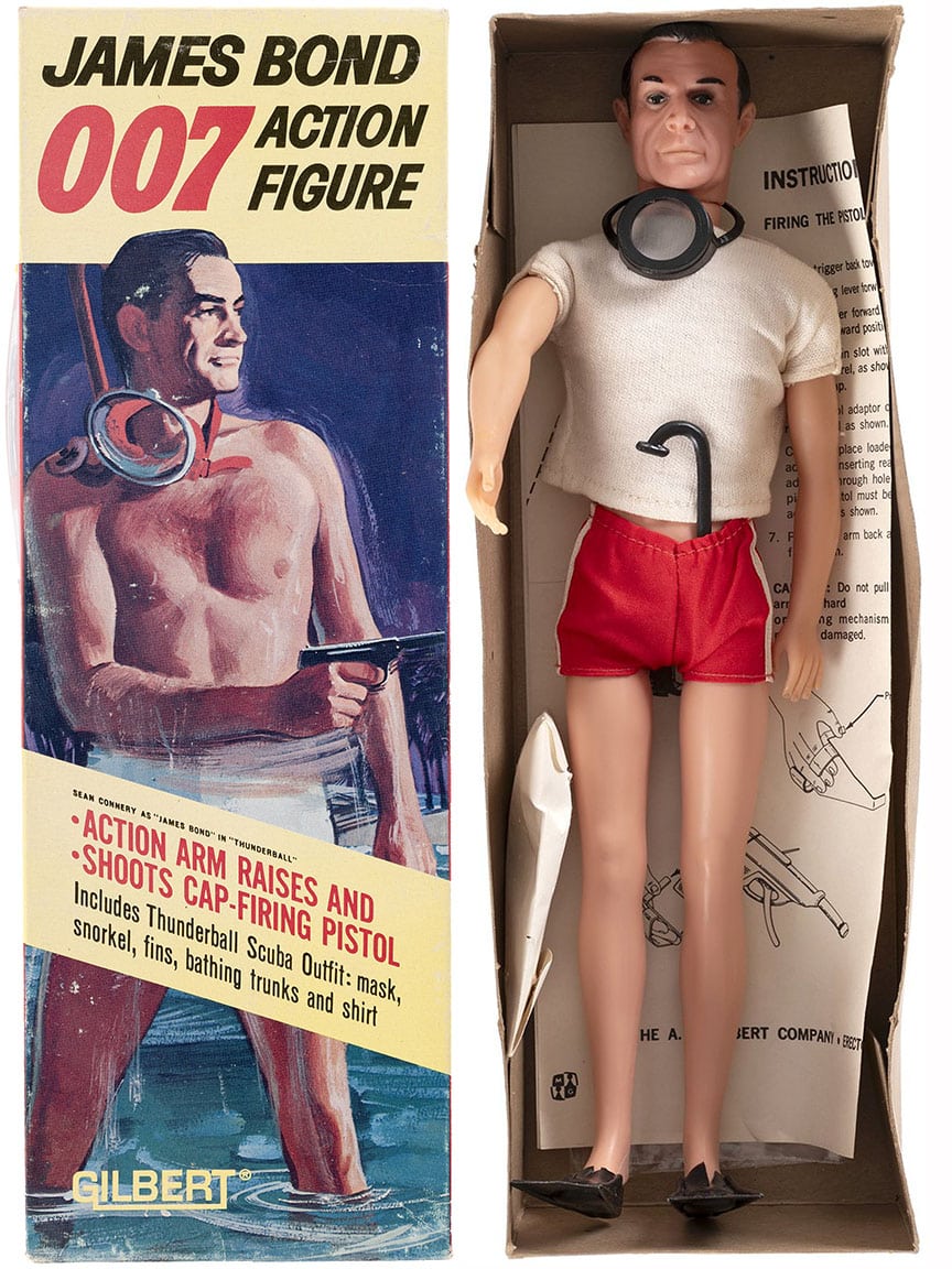 While G.I. Joe was the first action figure, James Bond was hot on his trail! This 1965 Gilbert figure of James Bond as he appeared in Thunderball includes the likeness of Sean Connery, as well as a mask, snorkel and swim fins. Once you buy it, you have the right to remove the snorkel from the front of his pants, thereby avoiding awkward conversations. Starting Bid: $200