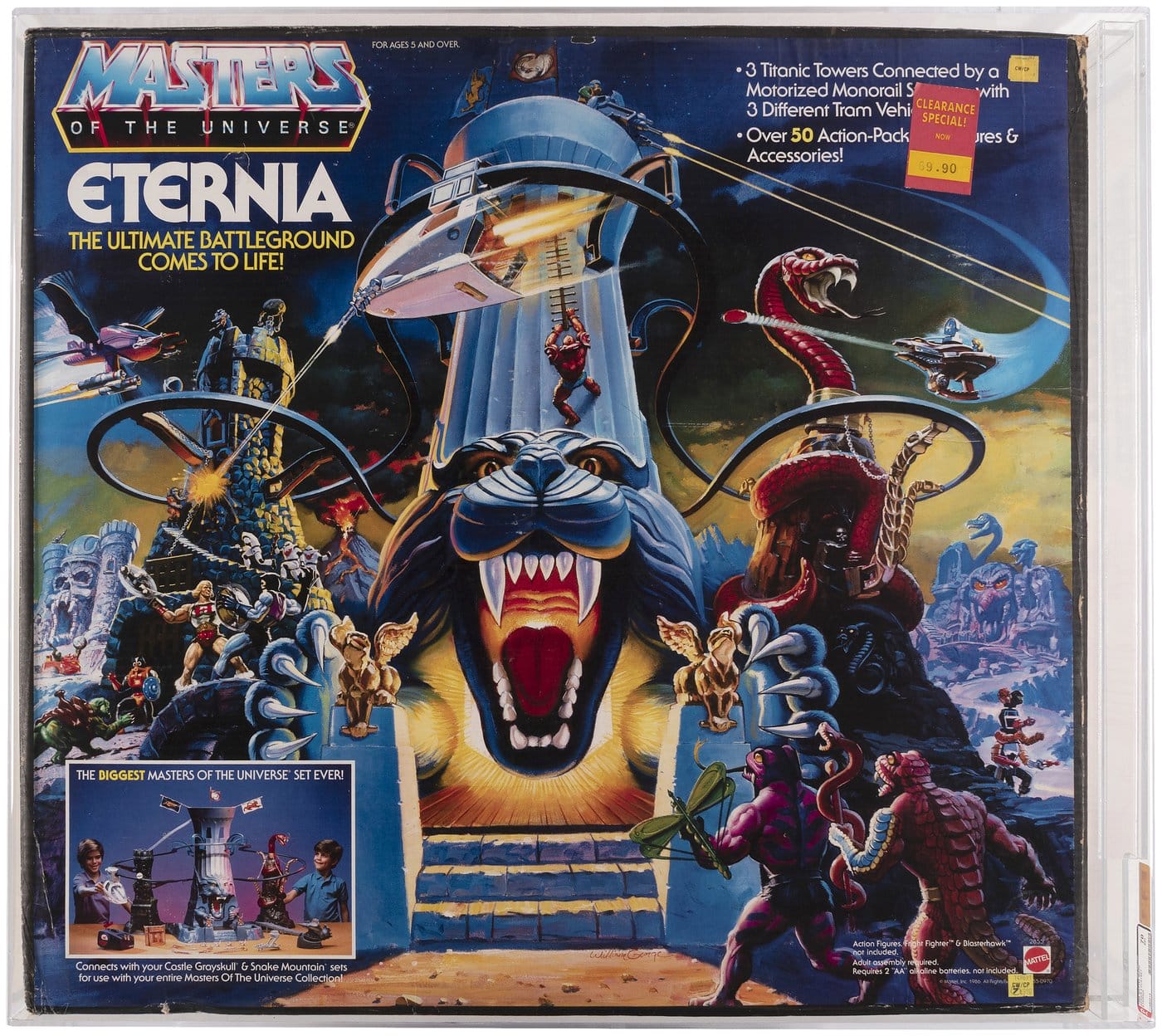Ah, Eternia – home of Snake Mountain, Castle Grayskull and a little-used monorail system that connects all three. Seriously, why did He-Man never take the monorail? It would have saved a lot of gas for the Air Raider and Sky Sled. Anyway, the Eternia playset’s monorail featured the Battle Tram, Sky Cage and Jet Pack Fighter, and all seem like perfectly acceptable, all-electric forms of transportation. This massive box was marked down to $70 back in 1986, but you’ll pay a little more for it today. Starting Bid: $5,000