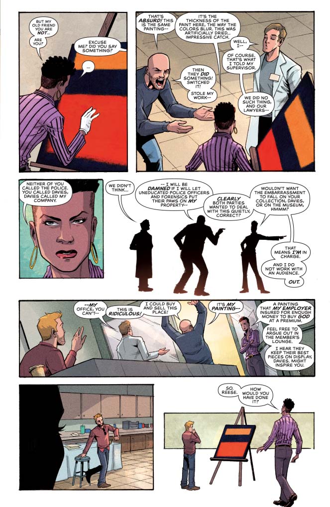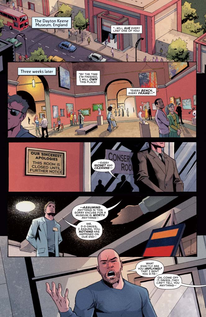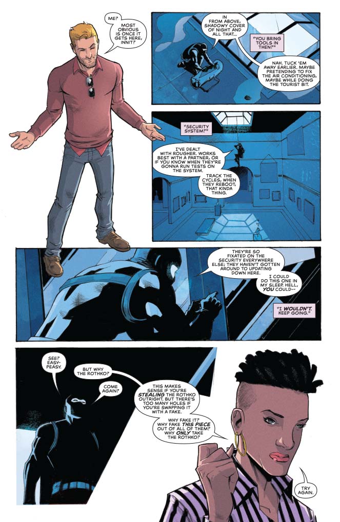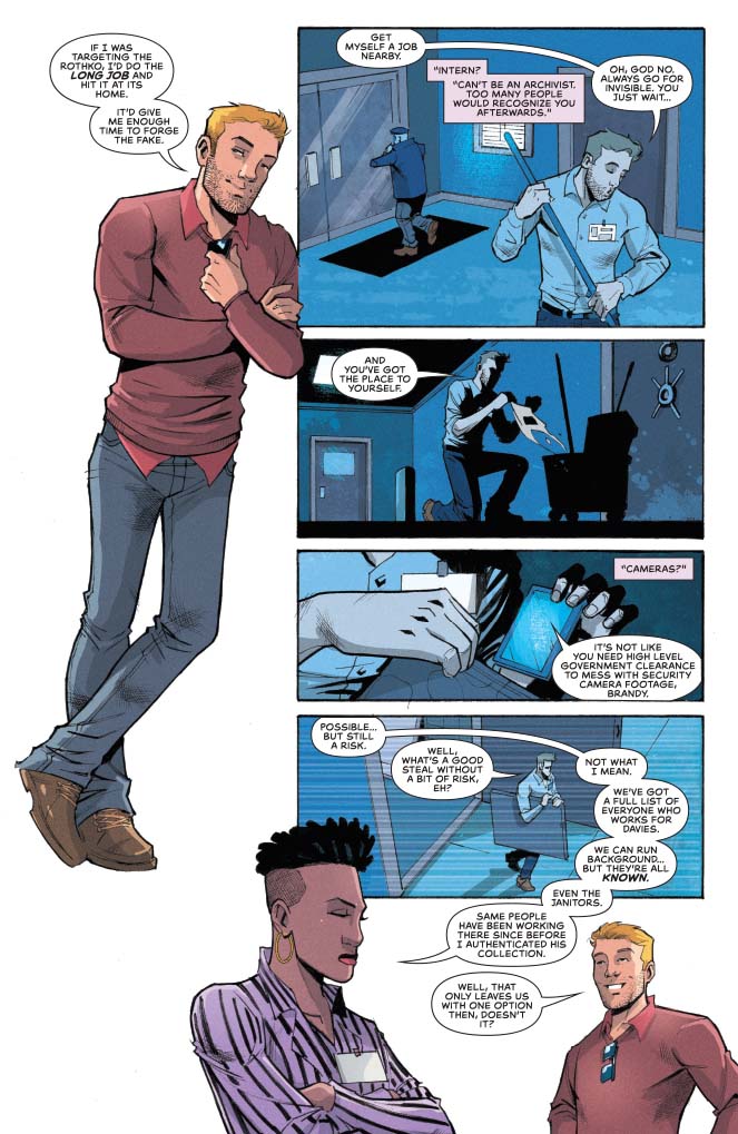 007 #1 is a solid opening overall. We get some intriguing new characters and an enemy with some potential. What Johnson has done really well is delivered us what feels like Bond’s betters. He survived the initial opening due to luck not skill. We see over and over his enemies are one step ahead of him and he’s being manipulated by him. This isn’t our usual. He’s not following clues to find the enemy, the enemy is watching him and directing him the way they want.