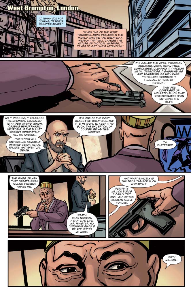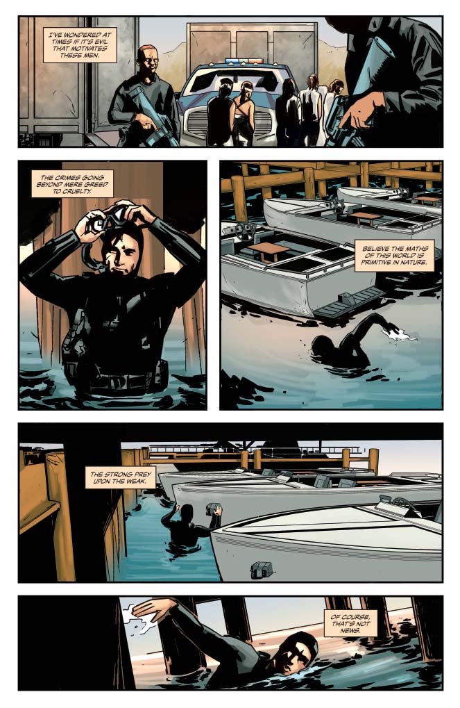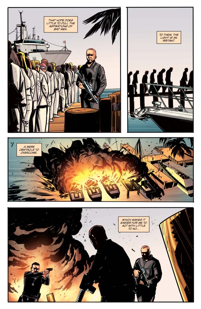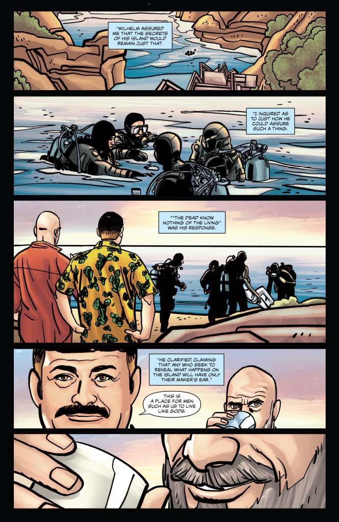 James Bond continues to unravel the horror he’s uncovered as he makes his way to the center of it all – Wilhelm’s island – with the reluctant Sarah Richmond in tow. All the while: Kino continues to stalk the pair, awaiting his moment to strike!