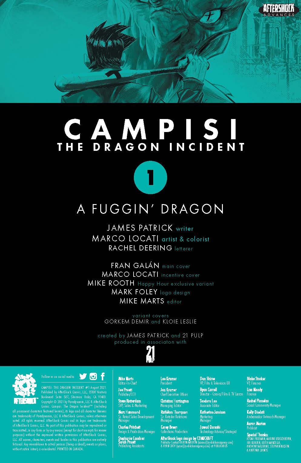 Campisi: The Dragon Incident is another book that upholds Aftershock’s reputation as a quality comics publisher; if you see a comic that half interests you with the Aftershock logo, you can have confidence that at the very least it’ll be a good book that’s worth reading. Whether it’s up your alley is something else, but you’re not likely to find an Aftershock comic you don’t like because its creative team were having an off day.
