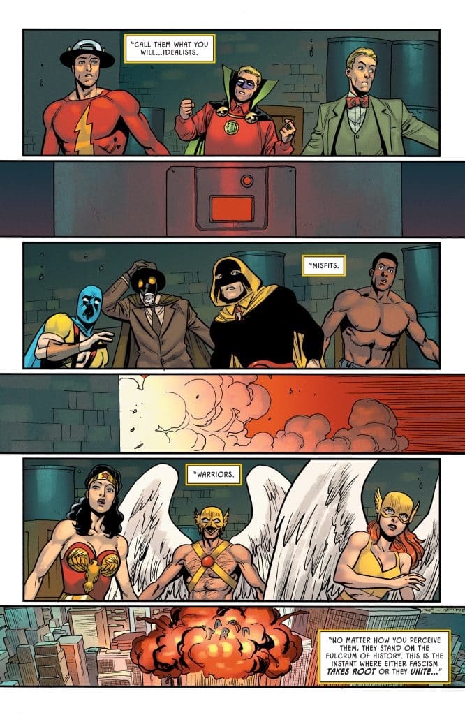 Story: Mark Waid, Tom King, Christopher Priest, Sean Murphy, Matt Fraction, Jeff Lemire, Greg Rucka, Gail Simone Art: Jorge Jimenez, Jim Lee, Daniel Sampere, Sean Murphy, Steve Lieber Ink: Scott Williams, Rafa Sandoval, Nicla Scott, Belen Ortega Color: Tomeu Morrey, Alex Sinclair, Alejandro Sanchez, Simon Gough, Nathan Fairbairn, Ulises Arreola, Marcelo Maiolo, Jordie Bellaire Letterer: Tom Napolitano, Pat Brosseau, Willie Schubert, Andworld Design, Clayton Cowles, Becca Carey, Ariana Maher, Lucas Gattoni