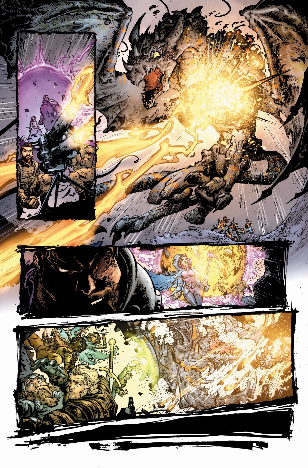 What’s really frustrating about the comic is the art by Agustin Padilla. It might be the fact I read it on a tablet but there’s numerous moments I can’t tell what’s going on. The panels are too close to the action and the storytelling would have been helped by pulling back a bit to give a better view as to what’s going on. But, Padilla’s art is solid when it’s clear. Joined by Jeremy Colwell on color and Jake M. Wood on lettering the characters and world really pop and look great. There’s just a few too many panels and sequences that are hard to make out exactly what’s going on.