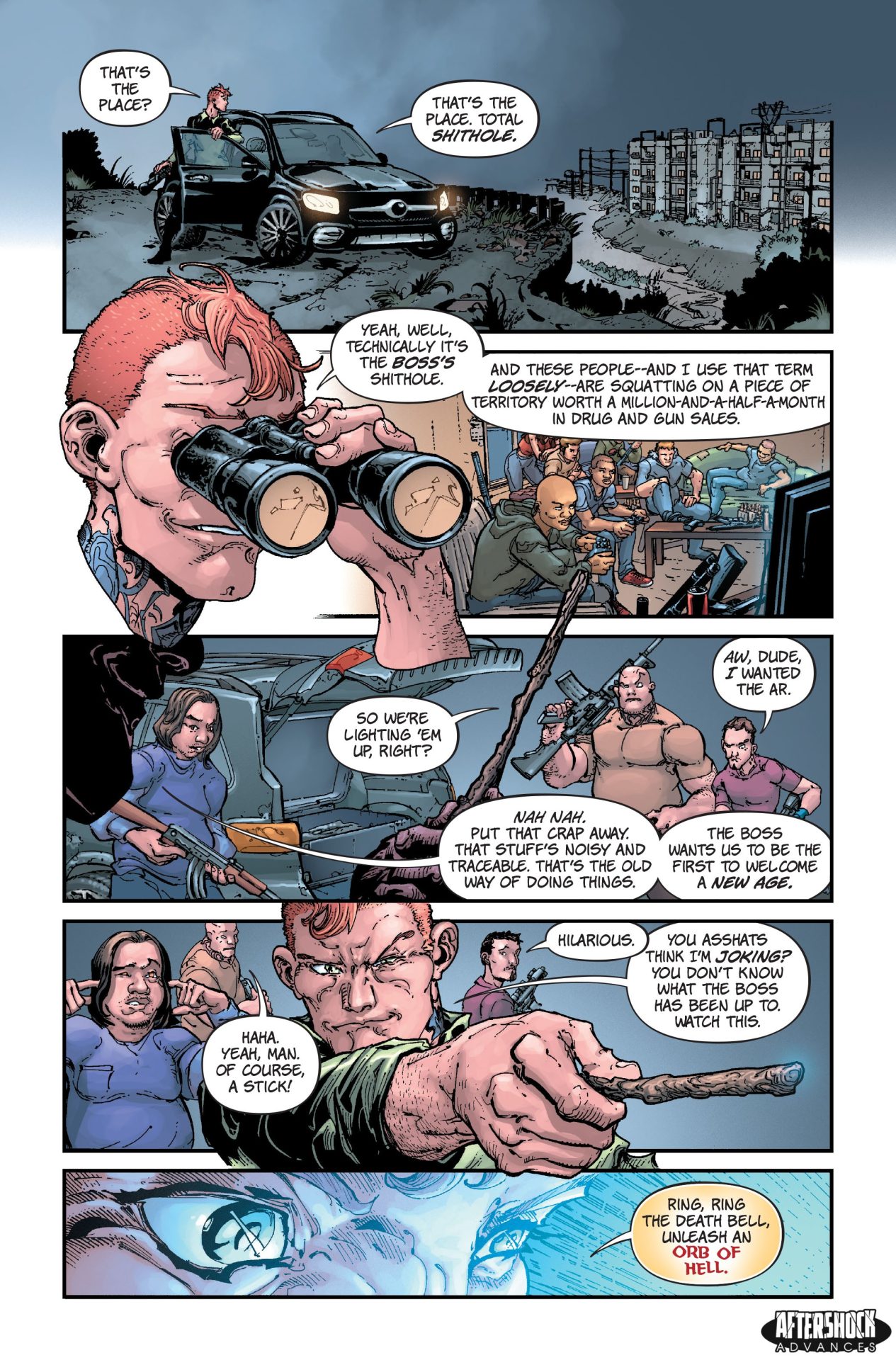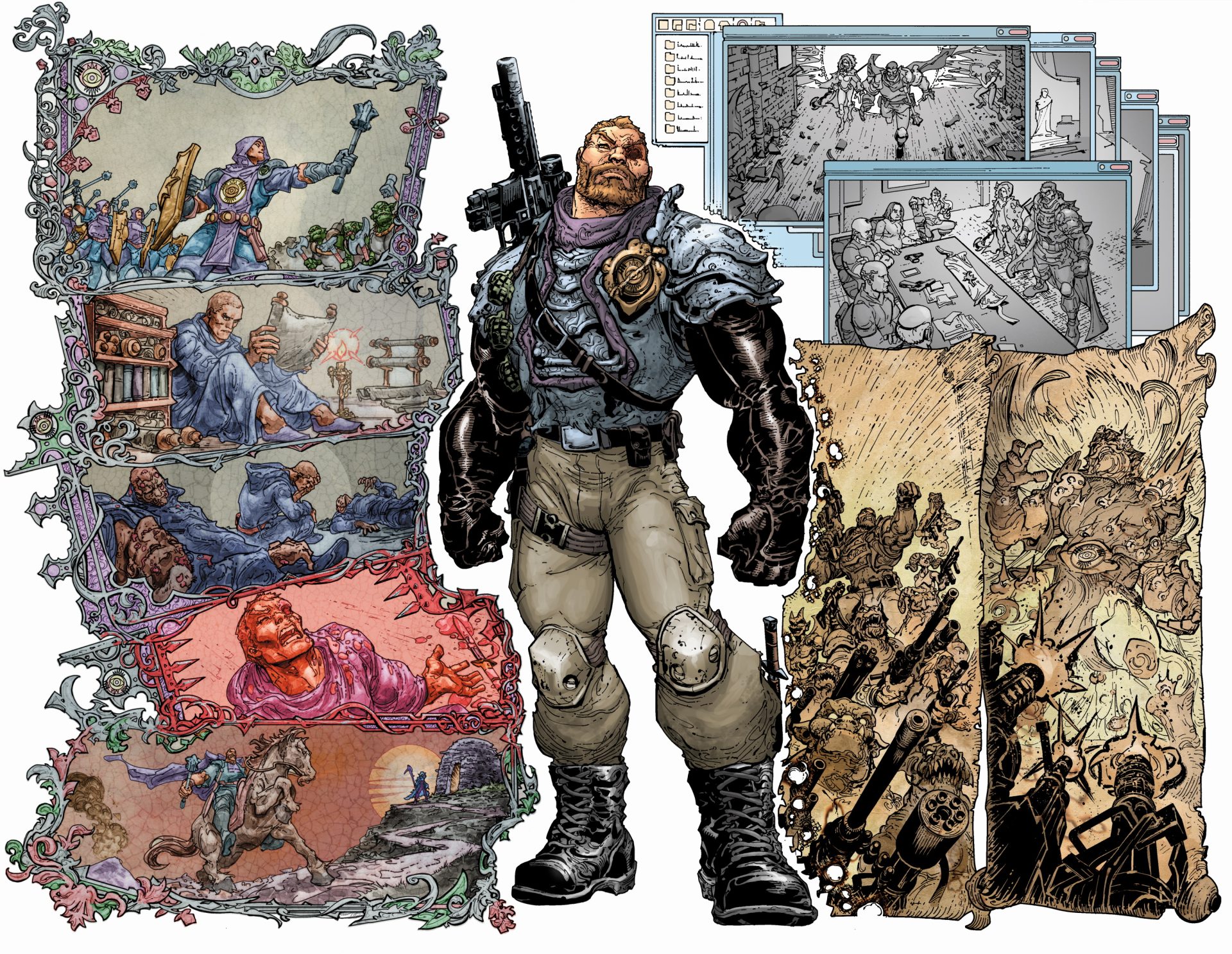 Our heroes must undertake an epic quest across a broken and dangerous land…AMERICA! When the mad monk, Epoch Craev unleashes monsters on small towns, Warlock and the War Party face more than just impossible creatures as they’re assaulted by suspicion, anger and the dying gasps of the American dream.