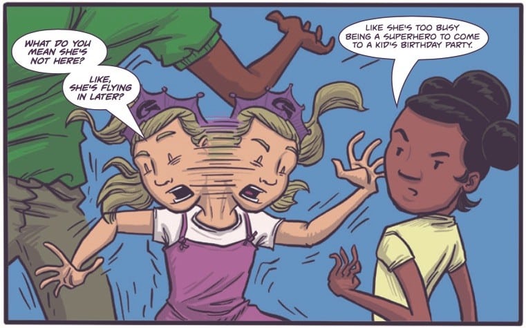Glamorella’s Daughter, the story of Comet, a brilliant and neuro-diverse kid with a superhero for a mom, is back with a new chapter! Issue #6 has Comet, her mother and family trapped in the home of her grandfather, The Poet King, who is the monarch of the realm Glamorella escaped from.