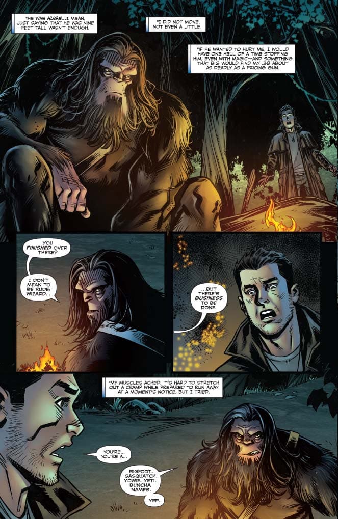 She eventually continued her work in this world by taking it stateside when she wrote Fantastic Beasts and Where to Find Them. It took the world she introduced in Harry Potter and put in an urban setting, leading many to believe this had been the first-time audiences got to see wizards in a city landscape. But as most avid urban fantasy readers like myself have known, writers like Jim Butcher have been putting wizards in this world for years and much better than Rowling could ever do. In the first issue of the graphic adaptation of Jim Butcher’s Dresden Files: Welcome To The Jungle, we find our protagonist in the midst of a city on the edge and magic is the reason for all the chaos.
