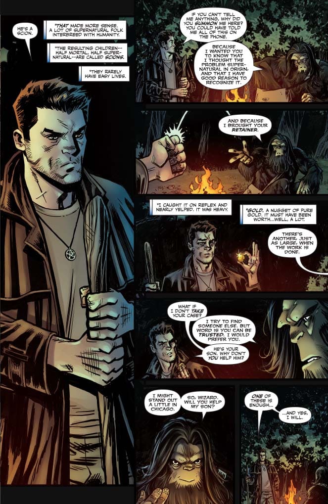 We’re taken to the Chicago Zoo, where a murder under bizarre circumstances, has the police on high alert because of who the victim is connected to. As we meet Harry Dresden, an outcast wizard who’s also a private detective and has a penchant for finding the supernatural sources of his client’s aggrievements. Before long, Harry is called to the crime scene, one where we see the Chicago PD has both its skeptics and believers when it comes to magic, and it just so happens, his biggest champion is Lt Murphy, who has seen firsthand what Harry’s abilities can yield. Harry begins his investigation, where he sees that many things about this case is very odd and reminds him of a previous battle he had with a once close confidant. By issue’s end, whatever black magic has powers over the animals at the zoo come for Harry.