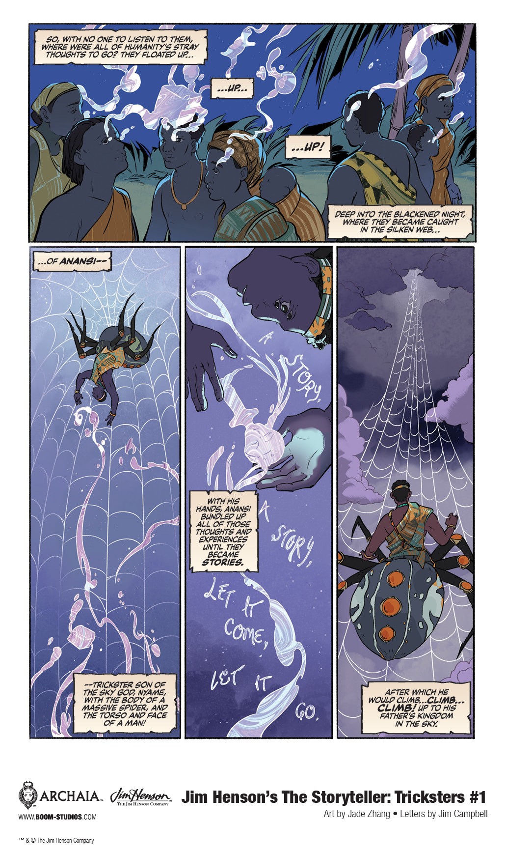 BOOM! Studios has announced the creative teams for all four issues of Jim Henson’s The Storyteller: Tricksters, a comic book series based on the Emmy Award-winning classic television show, Jim Henson’s The Storyteller, presenting several extraordinary folk tales of legendary tricksters from the four corners of the world. Each issue will feature a new creative team, with the first issue, by writer Jonathan Rivera, artist Jade Zhang, and letterer Jim Campbell, featuring the most famous trickster of all—Anansi, available on March 17, 2021.
