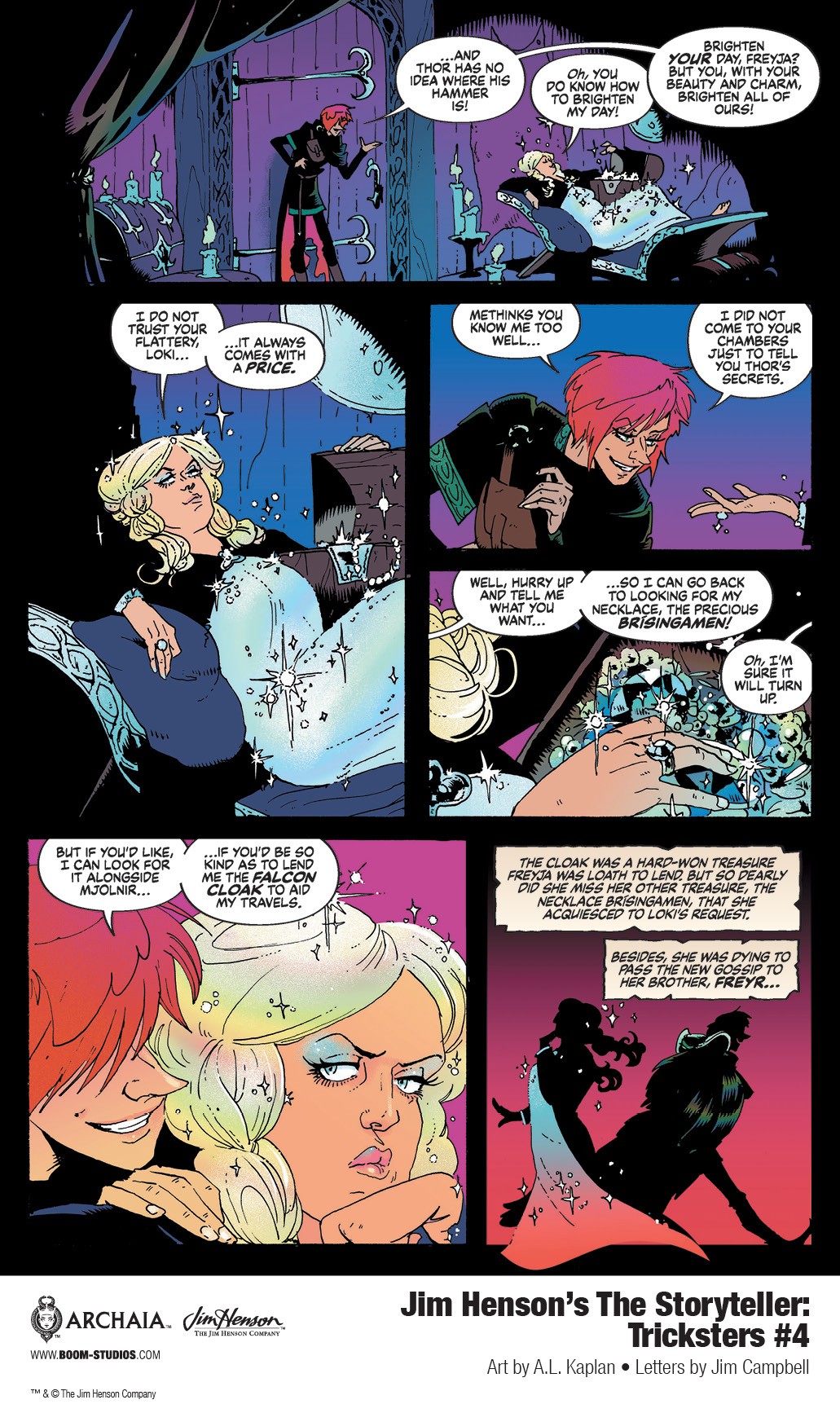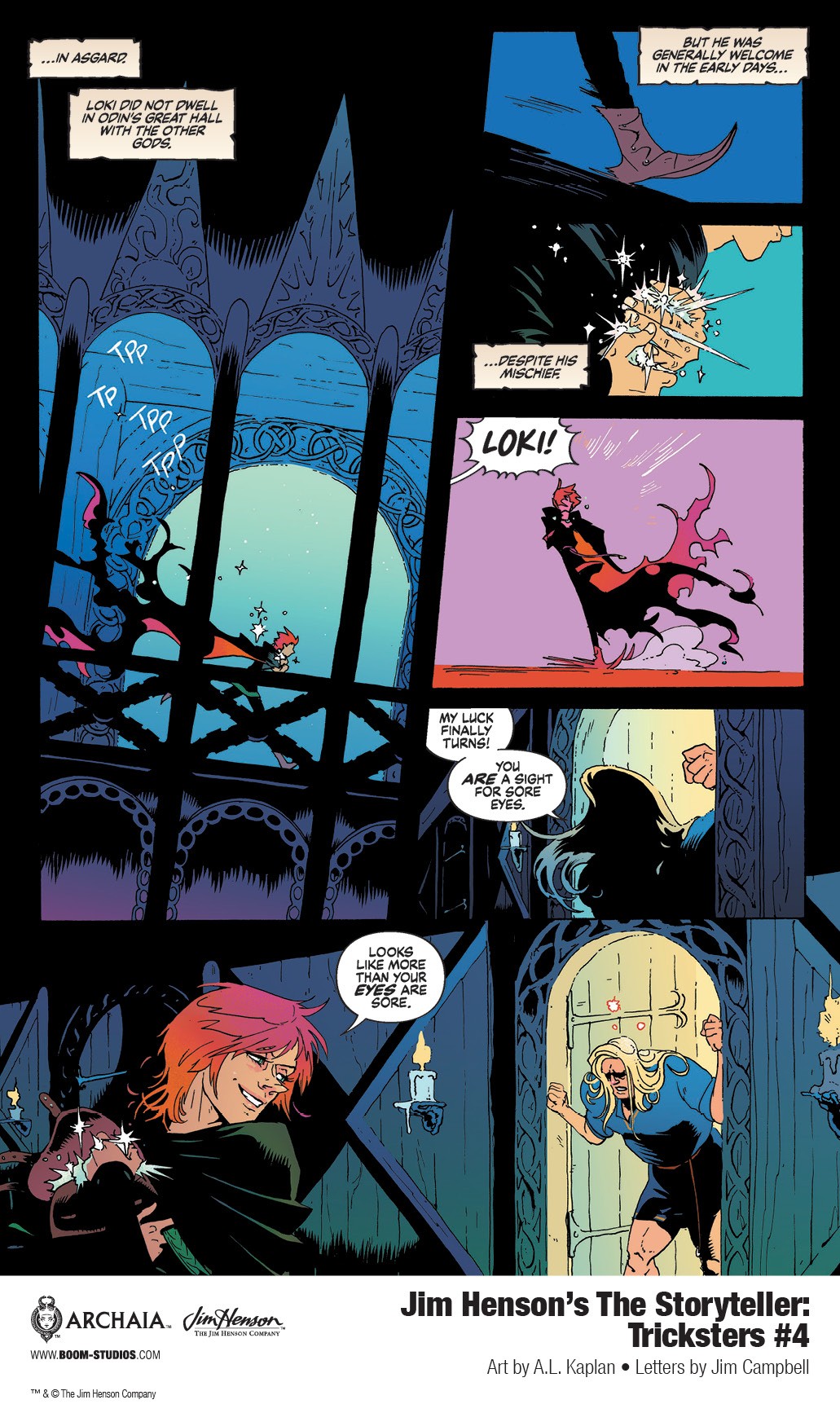 BOOM! Studios has revealed the first look ofJim Henson’s The Storyteller: Tricksters #4, the final issue of the new comic book series based on the Emmy Award-winning classic television show, Jim Henson’s The Storyteller, presenting several extraordinary folk tales of legendary tricksters from the four corners of the world. Real-life siblings Robin Kaplan and A.L. Kaplan present the next standalone chapter of the Jim Henson-inspired epic limited series, available on June 16, 2021.