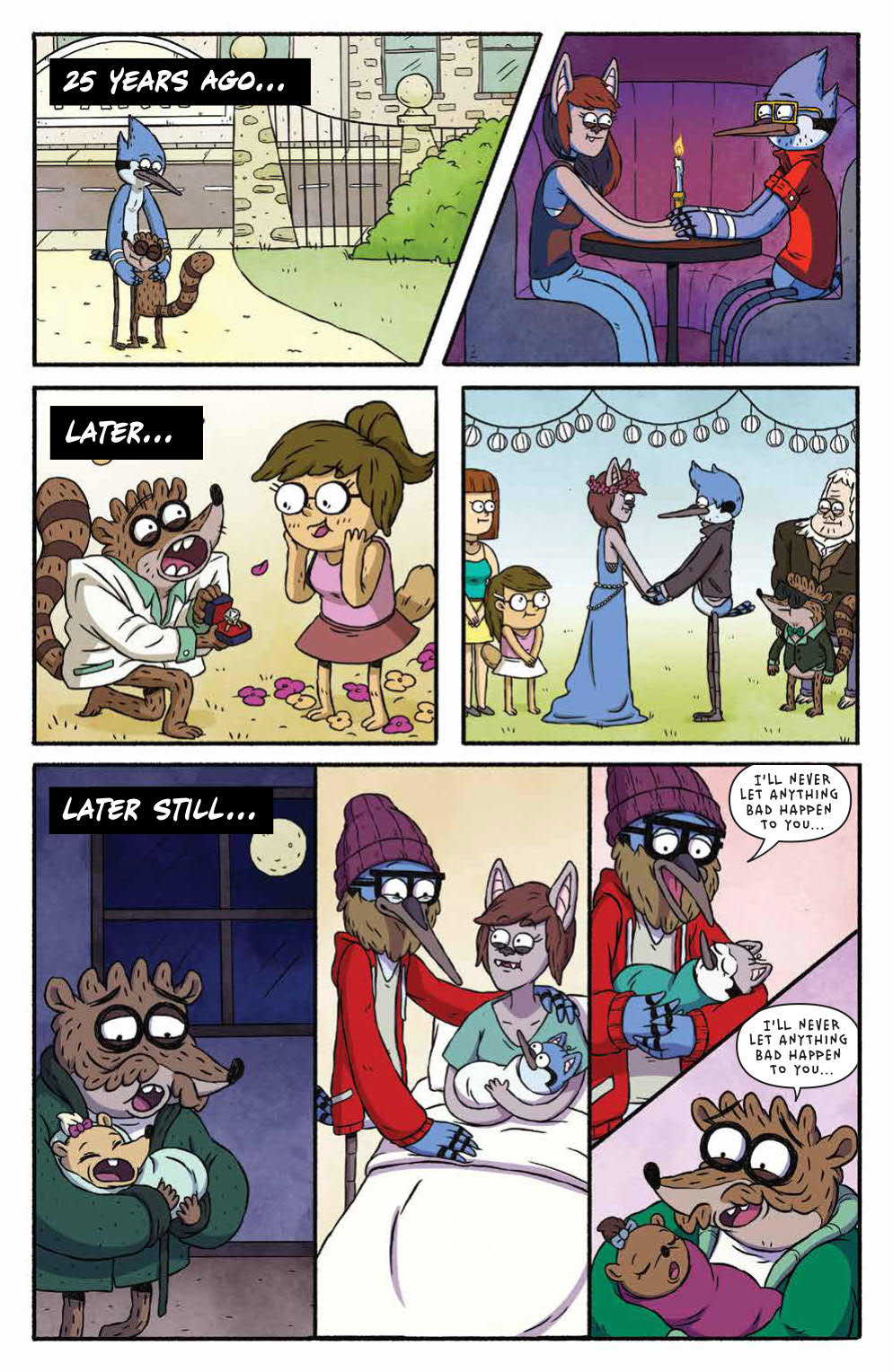 Twenty-five years after the epic battle between Pops and Anti-Pops, Mordecai, Rigby, and the rest of their friends return to the park for a reunion! Their crazy youth is nothing but a memory…or so Mordecai and Rigby think. It’s not long before these two friends stumble across a secret fairy world, find themselves young again, and have their children stolen by Viceroy Alberich, the Fairy King. Now 25 years younger, Mordecai and Rigby must work together to reform Alberich’s miscreant children if they want their own returned to them.