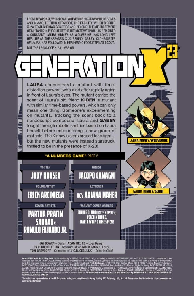 Laura Kinney was brainwashed and trained from birth to be the ultimate assassin as X-23. She’s long put that life behind her…but it seems she hasn’t quite outrun it yet! When Laura and Gabby encounter someone who seems to be their long lost friend, the harrowing plot they uncover will turn their worlds upside down. The next generation of X-subjects is here, and they follow in the deadly footsteps of X-23! Featuring a host of new heroes and villains, Generation X-23 have a surprise in store for the Wolverine!