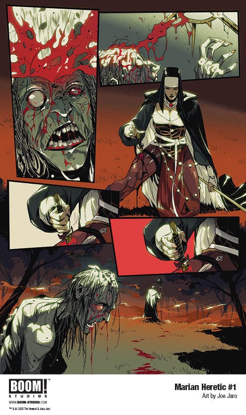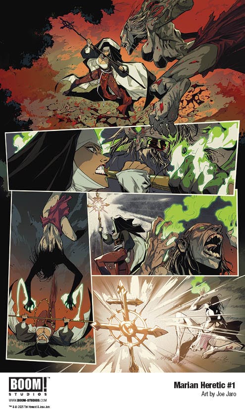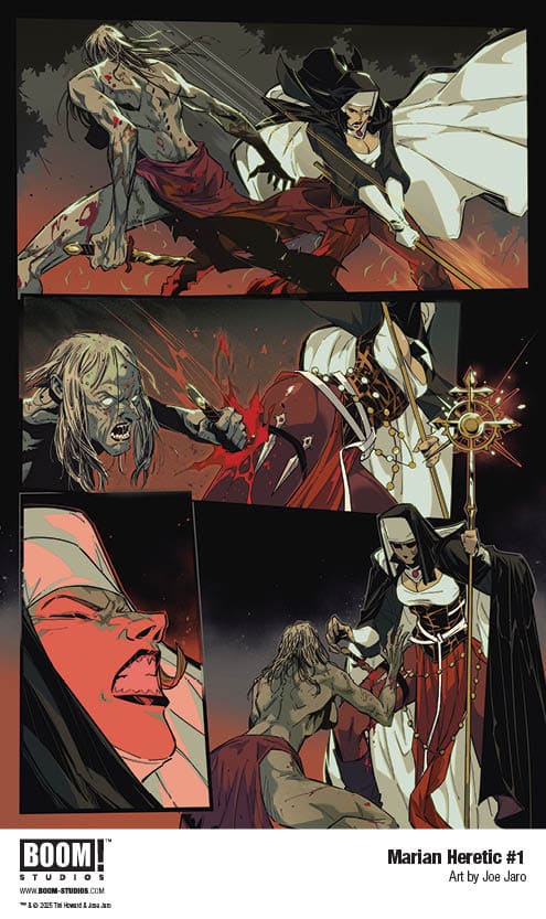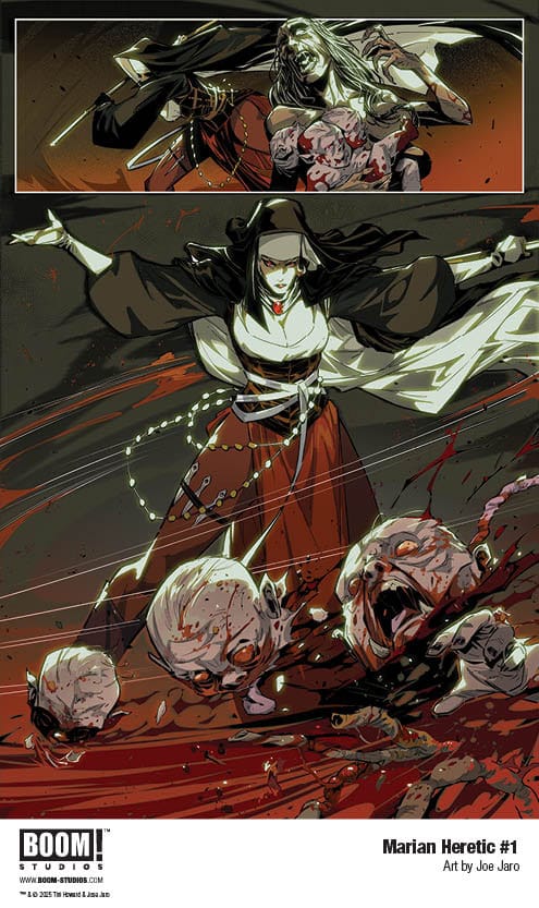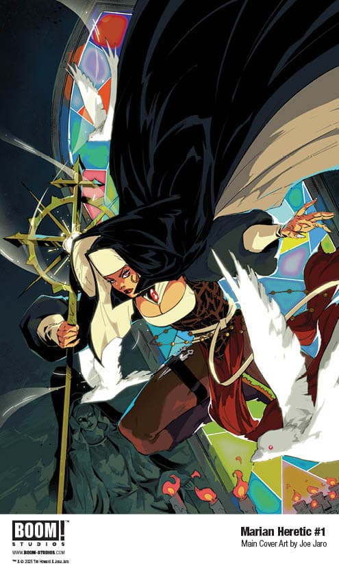 Acclaimed writer Tini Howard and lauded artist Joe Jaro launch their very first creator-owned series at BOOM! Studios with a provocative, high-octane new take on nunsploitation, religious horror, rebellion, and good ole fashioned monster hunting in Marian Heretic, coming October 2025.