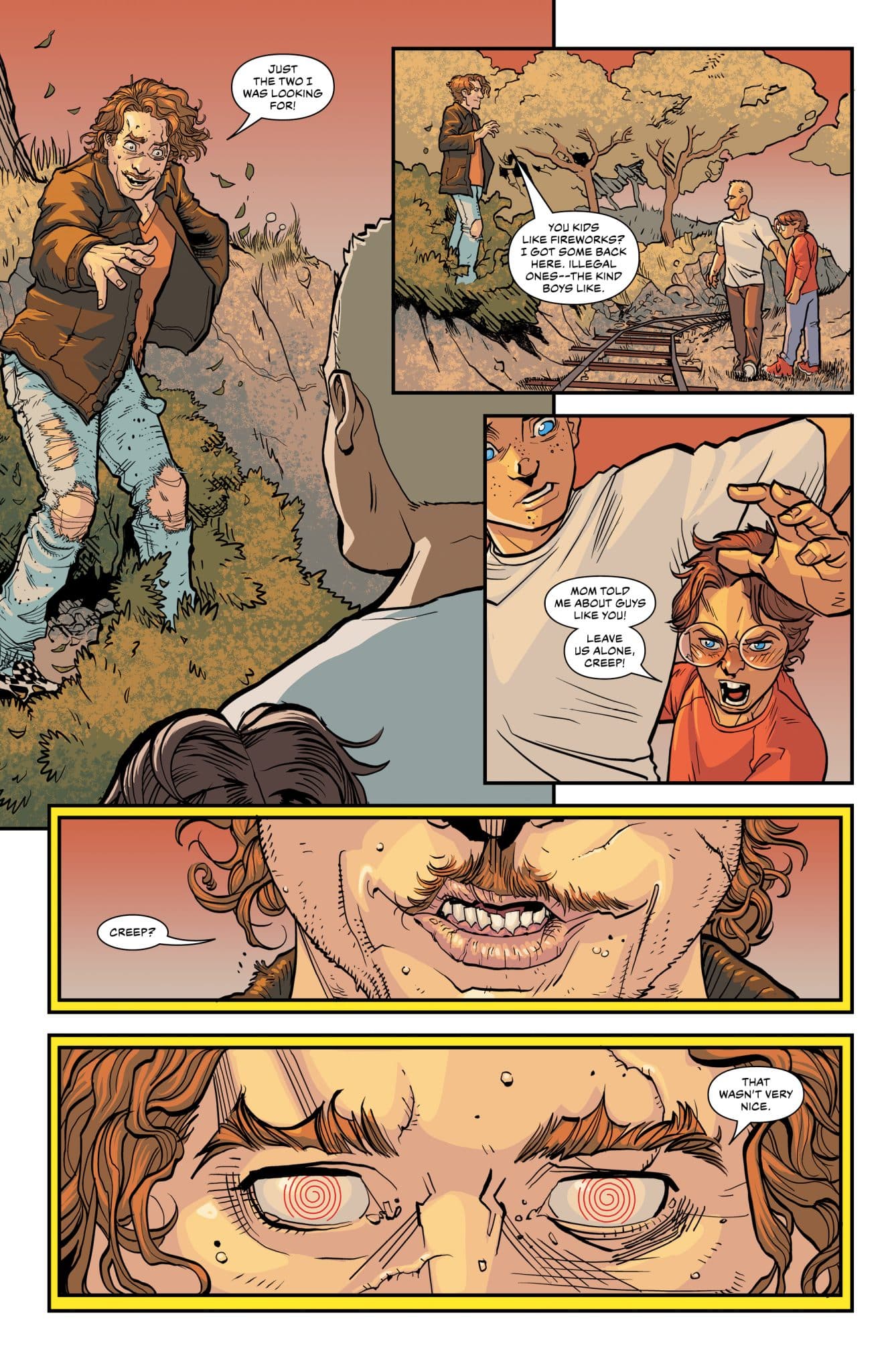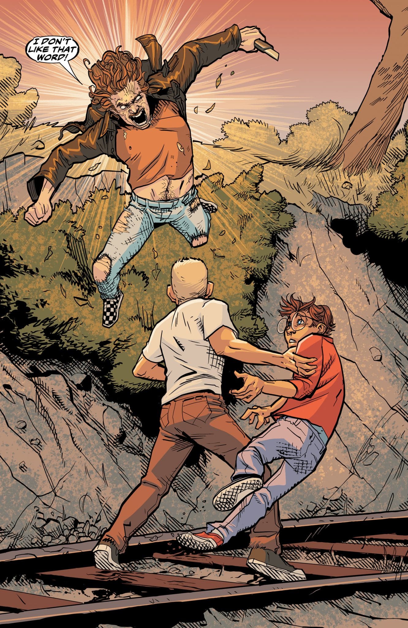 The art by Roland Boschi and Moreno Dinisio with color by Dinisio and lettering by Rus Wooton is solid. What’s interesting is the style fits more of the comedic aspect of the comic. It delivers exaggerated moments throughout preventing it from being as serious as its subject matter would make it. The Jewish aspect is generally downplayed visually, smart as to avoid stereotypes. The bad guys have a look about them that fits every bad person on the ski mountain in an 80s comedy. The visuals are what keeps the comic a bit lighter and prevents it from being as depressing as it should be.