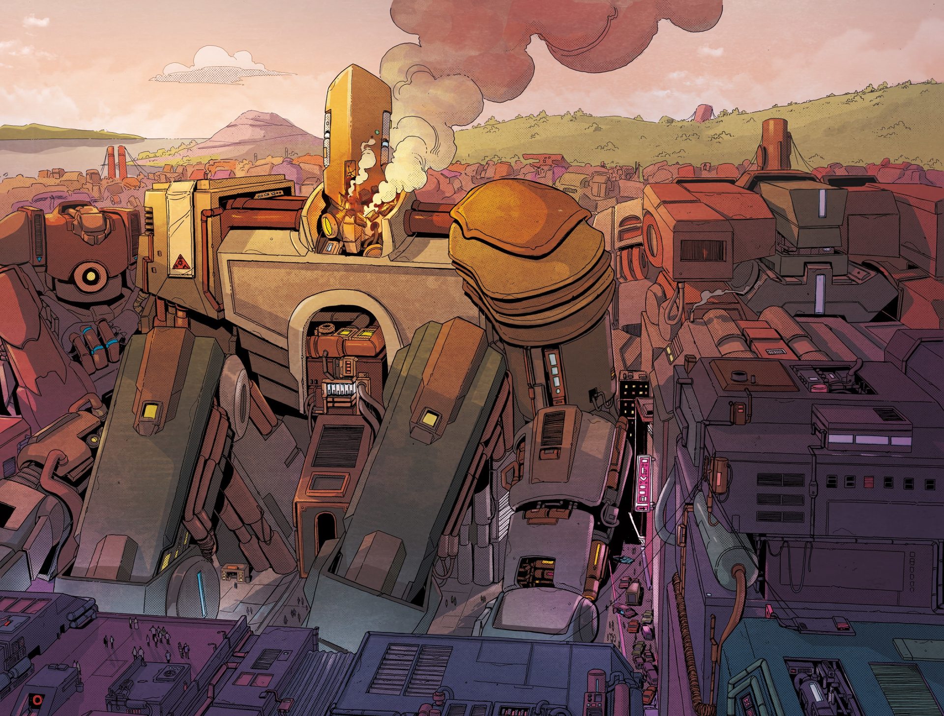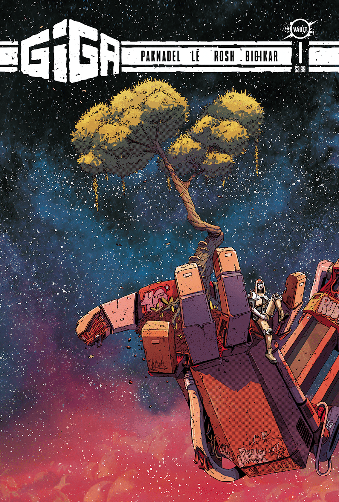 I’ve been quietly enjoying Giga over the last couple of months, and it dawned on me this week that I’ve been lax in actually reviewing this series. Giga is set in the far future after an apocalyptic war fought with giant robots, the titular Giga, that now sit slowly rusting as humanity lives around and in their long dormant forms, not unlike a bacteria. The idea of humanity as a virus isn’t new, but humanity as a bacteria isn’t something I have ever seen before. It provides a fascinating backdrop as the story plays out within the dormant Giga and a world that’s not quite post-apocalyptic anymore, but the scars of the war are still evident if you know where to look. John Lê‘s art, colored by Rosh, is beautiful, and really helps you get into Alex Paknadel‘s story.