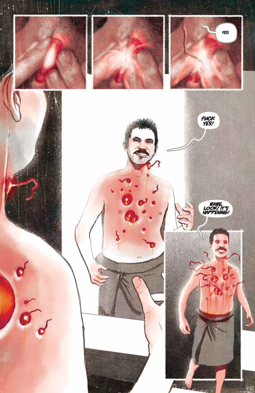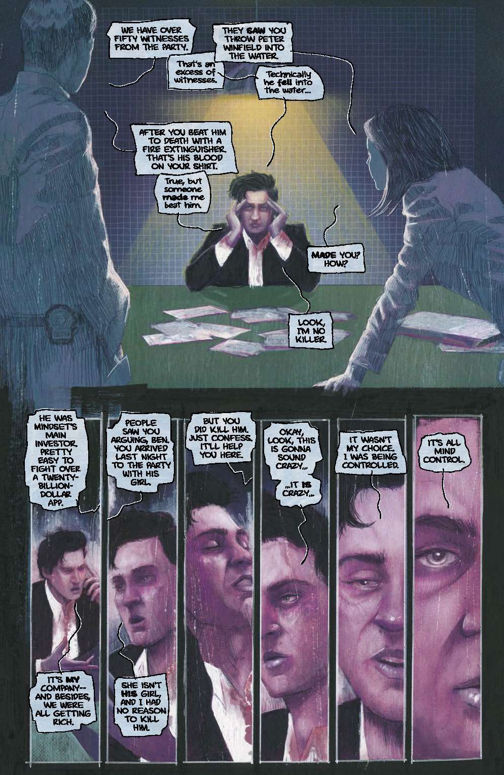 - DELUXE Edition including the oversized graphic novel (HC) w/bonus pages and a POP-UP insert featuring cover art by Jason Edmiston encased in the Piece of Mind Asylum Clamshell box with locking Cell Door Action and three (3) Piece of Mind Art Prints Triptych set by Hydro 74, ($150.00) – website only.