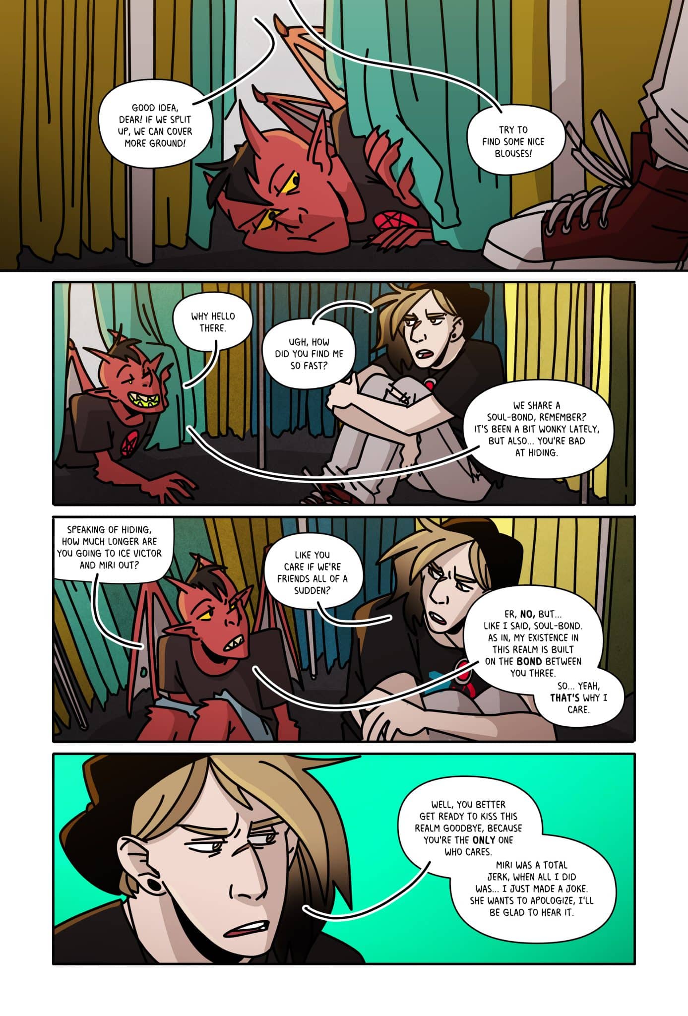 What are three punk teens and their demonic familiar to do in the face of actual hell breaking loose? As a demonically possessed student tears through the halls of the high school, Alistair scrambles to deal with the chaotic consequences of his actions. Meanwhile, with Reeves, Victor, and Miri still scattered, is there any hope for a happy ending? Guess you’ll just have to read and find out!