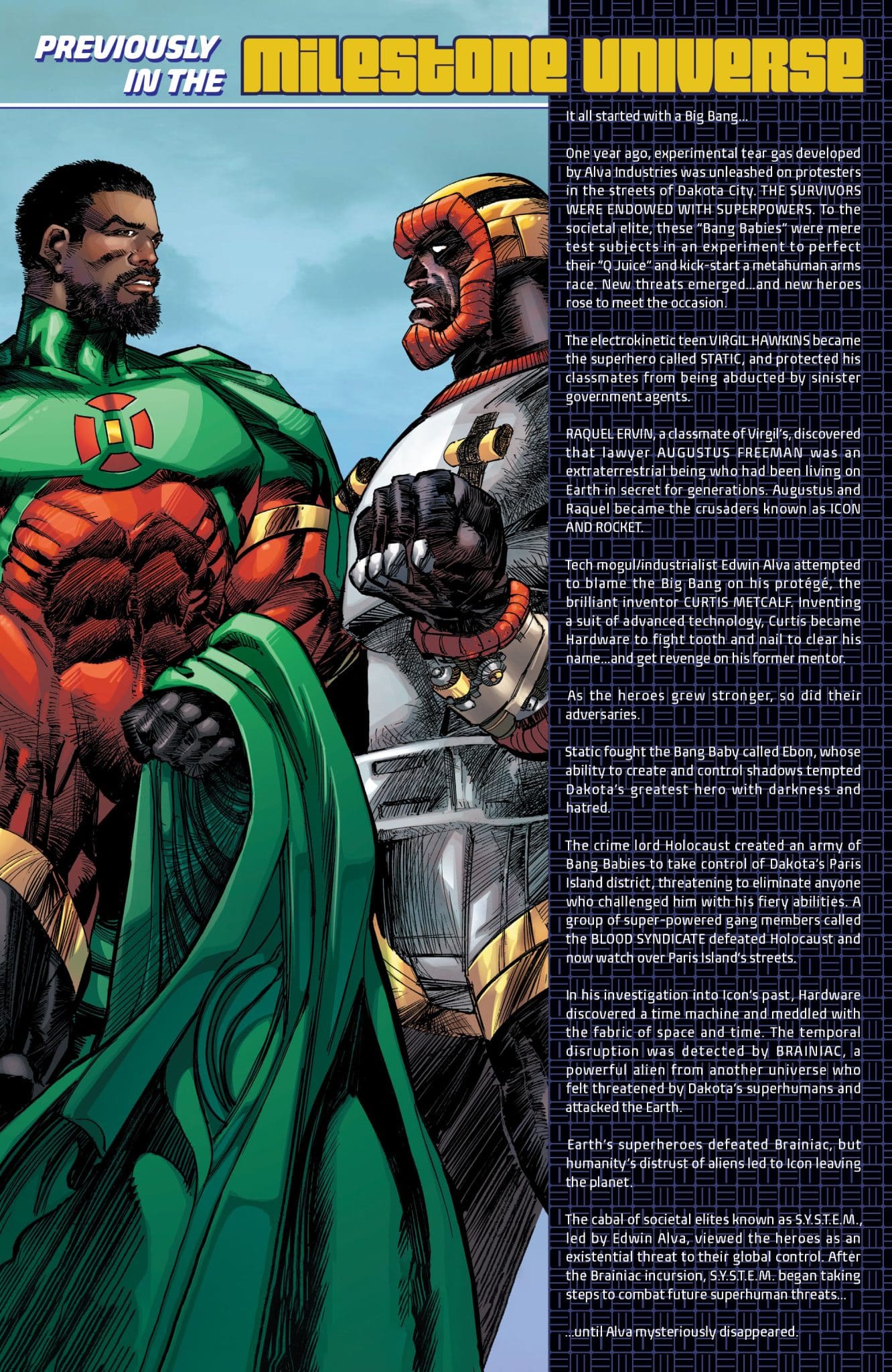 Spinning out of the pages of New History of the DC Universe, uncover an untold moment in DC history, where a murder leads to an all-out war between the heroes of Dakota City and U.S. government! As their home becomes a battlefield, what must Static, Rocket, and the others sacrifice to keep their loved ones safe? But as heroes fall in the past, the stage is set for their return in the present…