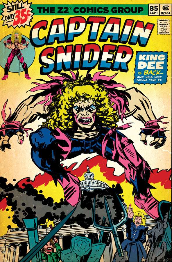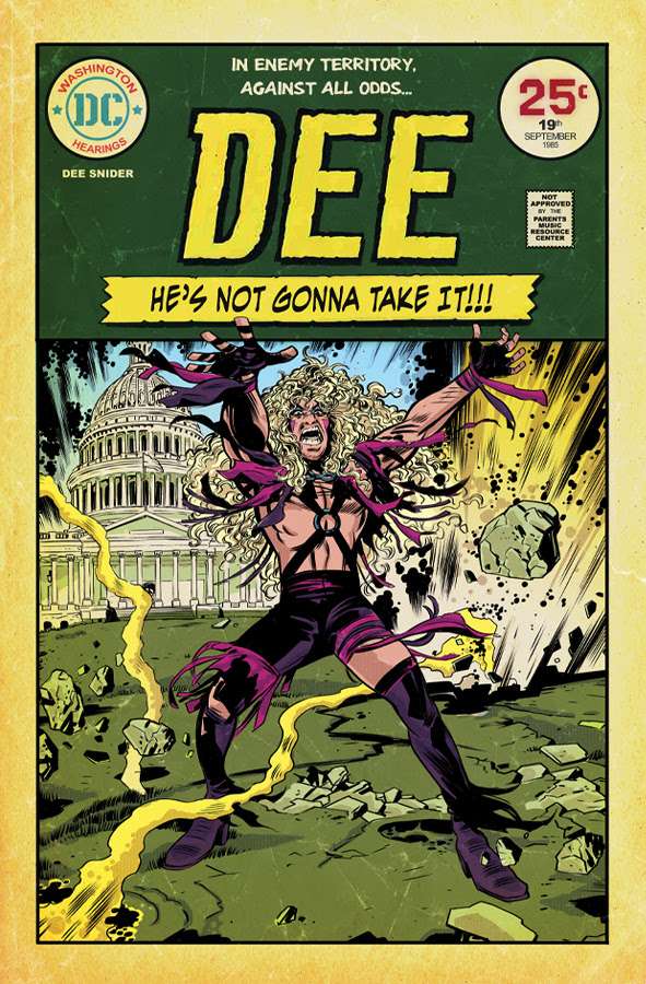 DEE SNIDER: He’s Not Gonna Take It will be available as a Deluxe Edition for a list price of $99.99 (includes Deluxe Edition Graphic Novel Oversized HC with Slipcase, Signed by Dee Snider, Commemorative Coin, and three Retro Dee Snider Commemorative Art Prints), hardcover for a list price of $29.99, and paperback for a list price of $24.99 (ISBN: 979-8-88656-030-5) – available at retailers everywhere on November 21, 2023. Preorder link.