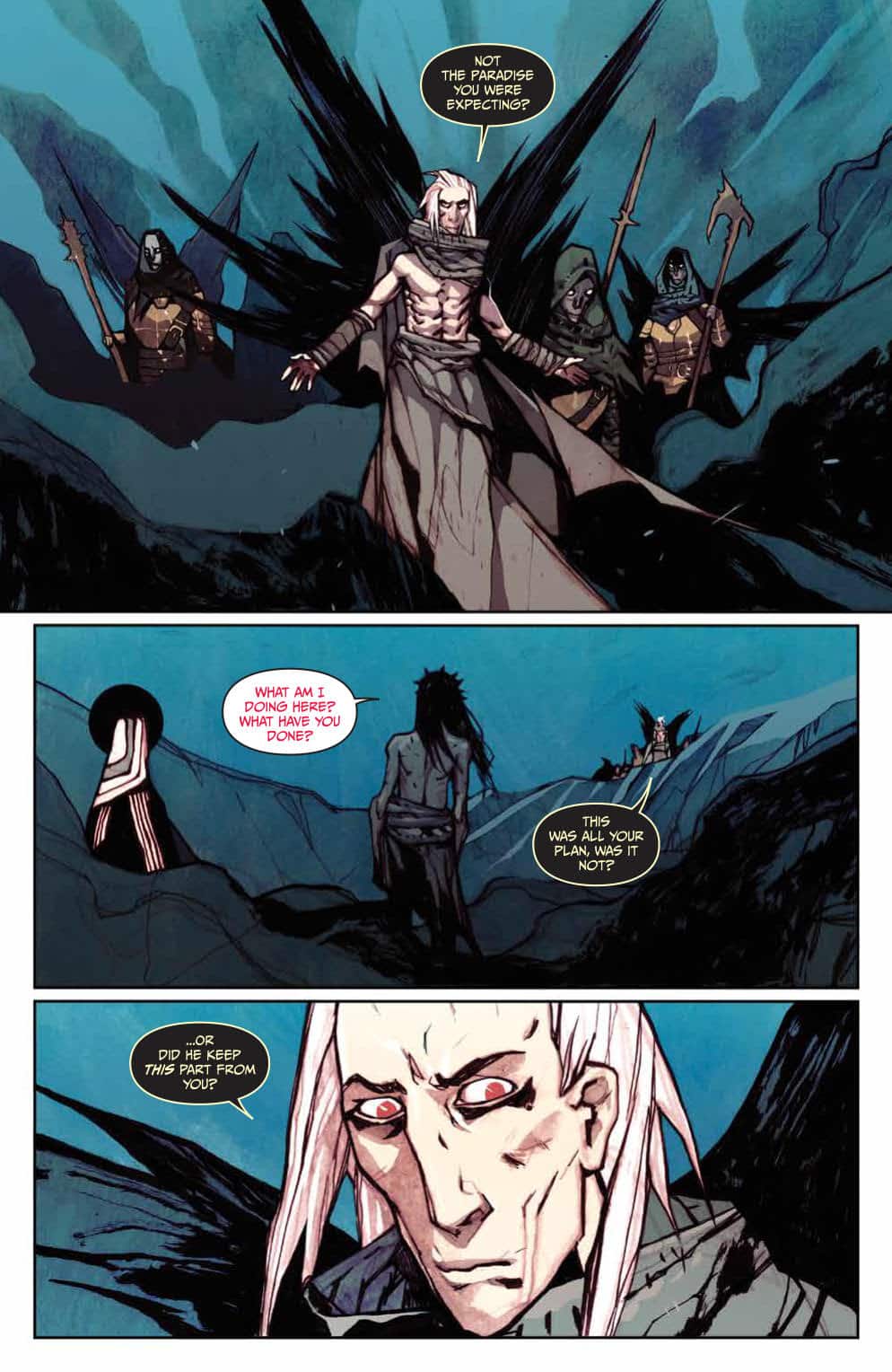 I love setting a story firmly within Hell. There’s a bit of Dante’s Inferno, it’s inescapable when dealing with the subject, but I wanted to make Hell a lonelier place. An emptier place. I wanted it to feel cold, like the absolute end of potential. You are tortured by your own worthlessness. We’ve seen fire and red devils and stuff like that… so I wanted to take us into a more personal space, where you have nothing but time to reflect upon your failures with no hope of escaping them.