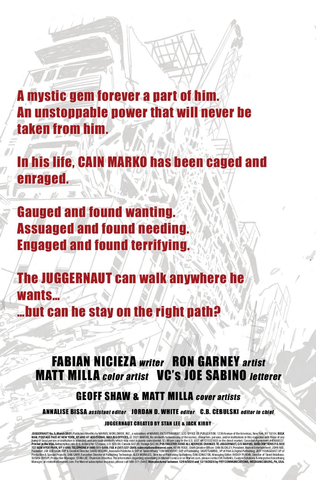 Juggernaut #2 is by Nicieza and Garney with colors by Matt Milla and lettering by Joe Sabino.
