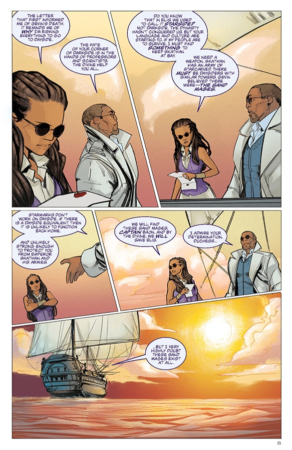 On the planet of Taldain, the legendary Sand Masters harness arcane powers to manipulate sand in spectacular ways. But when they are slaughtered in a sinister conspiracy, the weakest of their number, Kenton, believes himself to be the only survivor. With enemies closing in on all sides, Kenton forges an unlikely partnership with Khriss — a mysterious Darksider who hides secrets of her own. Assassins are coming for them from all directions, and Kenton’s only true ally is Khriss, a visitor from the other side of the planet who has an agenda of her own to pursue.