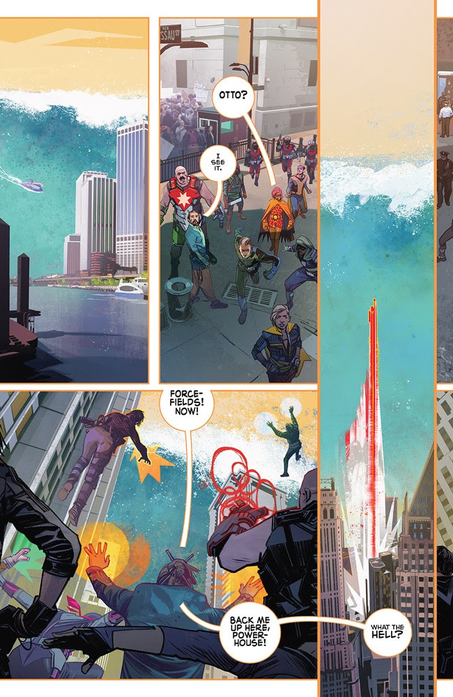 Josh Duhamel is the center of the show as Sheldon Sampson aka The Utopian. Having grown up in the early 1900s he’s a man out of time in a way. He holds traditional ideals, likes simpler things, and holds altruistic views. He has that “hero” sense that we think of in the simplest ways. And that makes things complicated for him. He attempts to hold those ideals and impart them to the next generation of heroes including his son Brandon, aka Paragon, and daughter Chloe.
