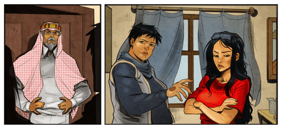 KBJ: Yeah, I think it’s immensely important, but I’m wary of tokenism and of people using diversity as simply a fad or marketing tool. I think then it’s like what Rakan is saying, it’s a slippery slope to misrepresentation and inauthenticity. But I think what Milestone Comics did in the 90’s was amazing. Like that is the goal in my mind. You took people that had a genuine, personal interest in telling stories with people from underrepresented backgrounds, and they came up with original characters and stories around that idea. And they owned it. That’s what we’re trying to do, we’re writing about who we are and what we’re genuinely interested in, and we own it and we want people who relate to it to feel some ownership of it too. That’s a big reason why it was important to publish in Arabic as well, we wanted the book to feel as homegrown as possible.