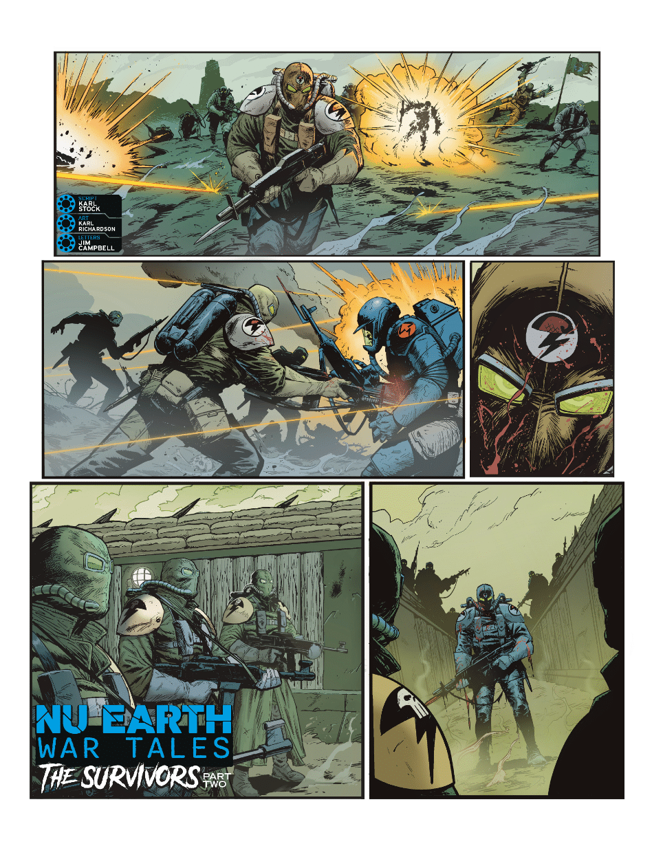 NU EARTH WAR TALES // THE SURVIVORS by Karl Stock (w) Karl Richardson (a) Jim Campbell (l)
