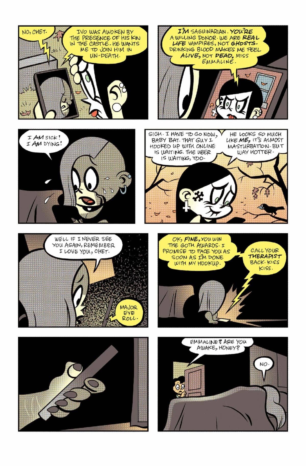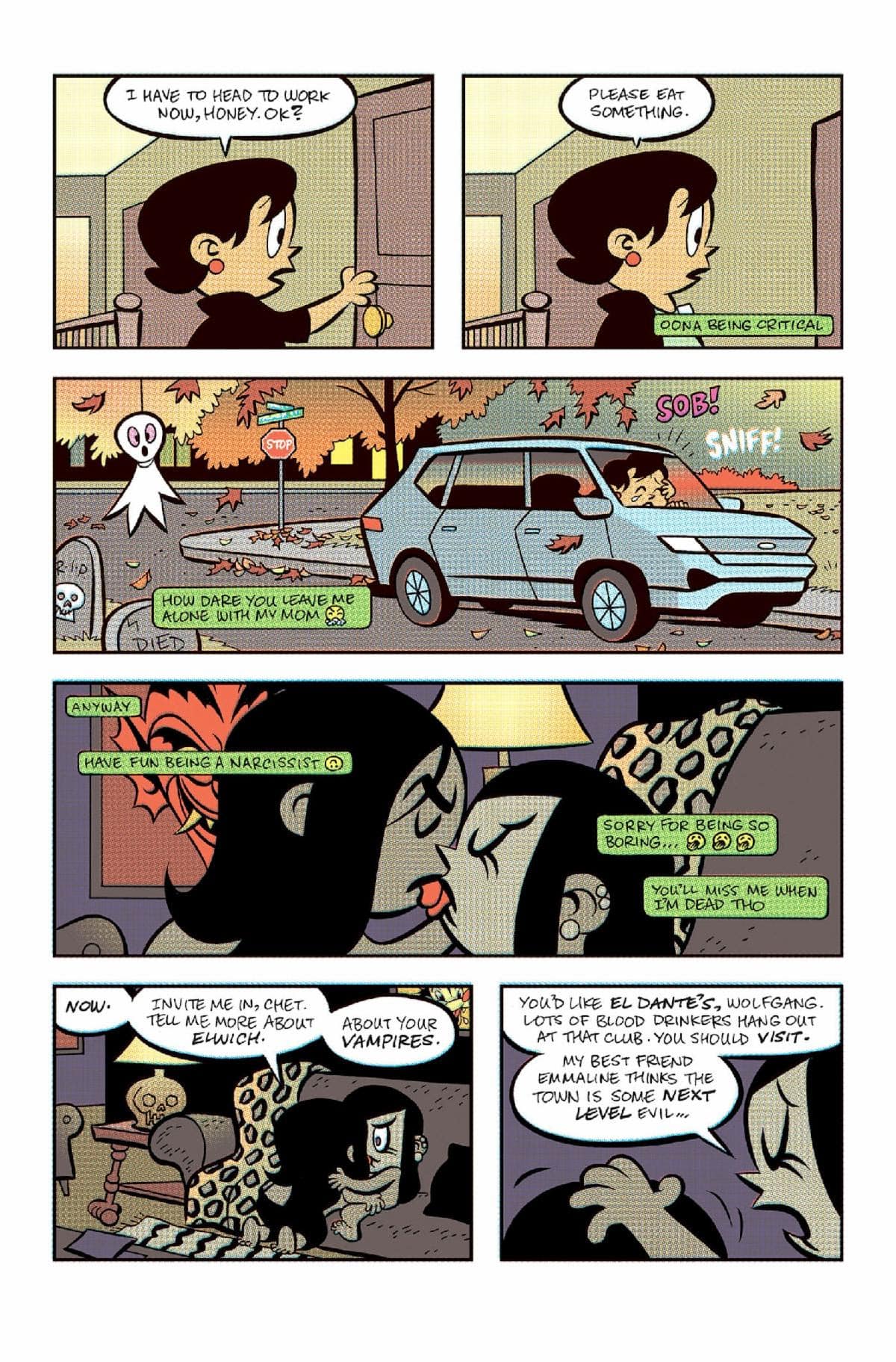 This Halloween, return to the terrifyingly tranquil streets that Dwellings calls home—as seen through the eyes of visitor Wolfgang LeGant! But Wolfgang is no ordinary tourist: He’s convinced he’s actually a seasoned vampire hunter, and this delusion has drawn him to Elwich to drive a stake through the once-unassuming town’s thriving “Saguinarian” goth subculture. But when Wolfgang meets Emmaline Momenta, a young woman similarly possessed by the idea that she’s a real vampire, irrational faith may be the only thing capable of stopping a mass murder in the making . . .