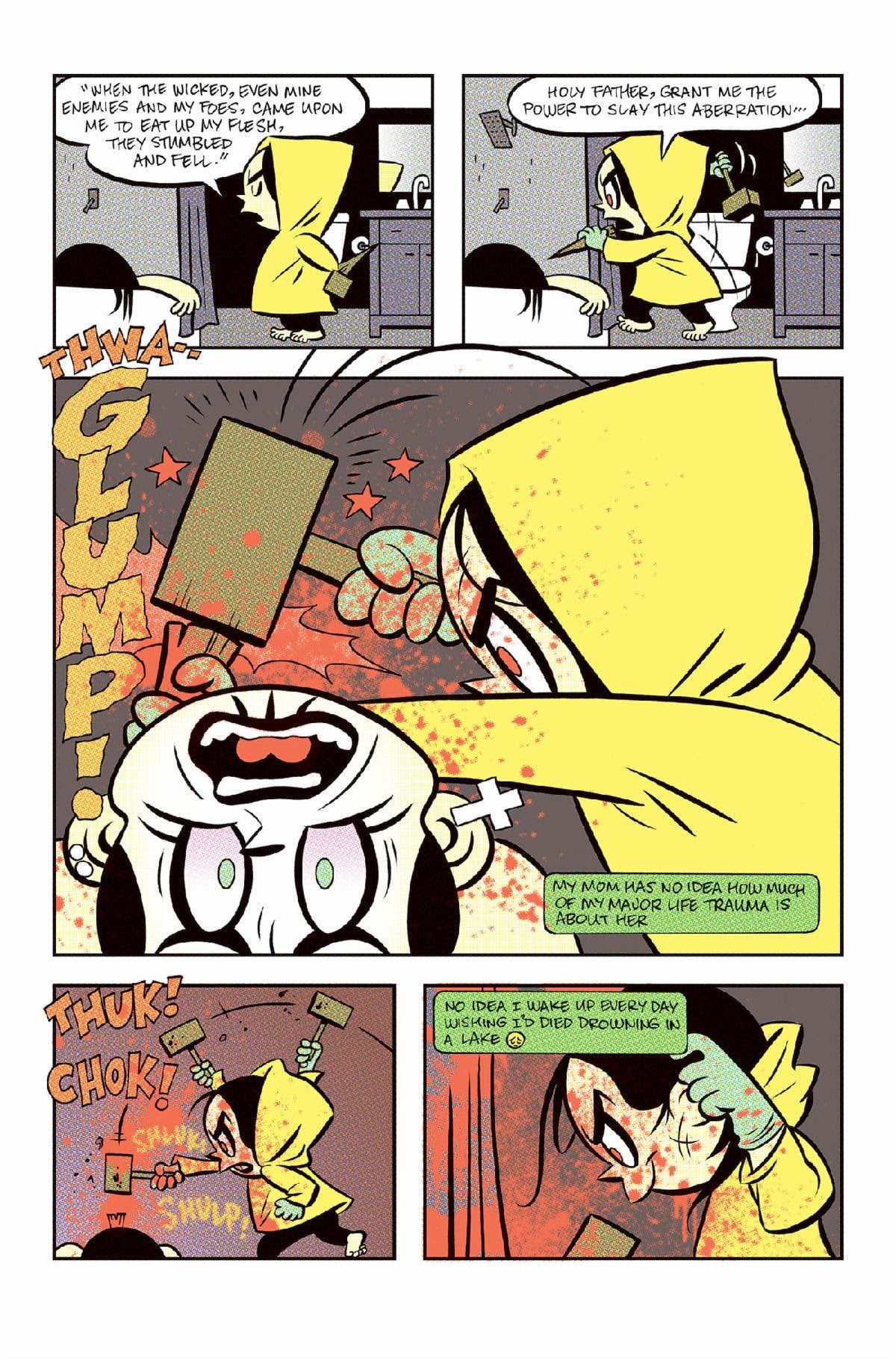Writer/artist Katie Skelly puts her own spin on the true crime genre inMaids, a highly stylized account of Christine and Lea Papin murdering their employers in France during the 1930s. Skelly’s linework and eye popping colors expertly convey the trauma and isolation that the Papins go through as they are at the beck and call of the family they work almost 24/7. Flashbacks add depth and context to Christine and Lea’s characters and provide fuel to the fire of the class warfare that they end up engaging in. Skelly’s simple, yet iconic approach character design really allowed me to connect with the Papins and empathize with them during the build-up from a new job to murder and mayhem. Maids is truly a showcase for a gifted cartoonist and not just a summary of historical events.