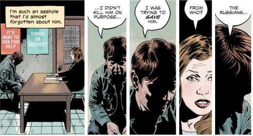 In the final issue of Kill or Be Killed, Ed Brubaker, Sean Phillips, and Elizabeth Breitweiser get gutsy narrative-wise by killing off their protagonist Dylan on the opening page, trying a kind of alternate ending, and then switching narrators altogether towards the end of the book. It’s unreliable narration at its finest, and Phillips and Breitweiser turn in some final snow blown New York vistas while Brubaker finally unpacks the book’s message in dramatic fashion, which is basically, “Everything and everyone is screwed”. And, in connection to the real world, this message makes much more sense that when the comic