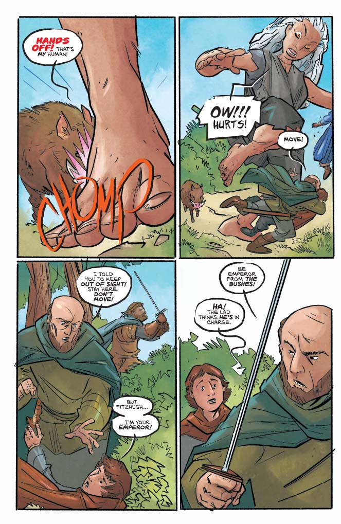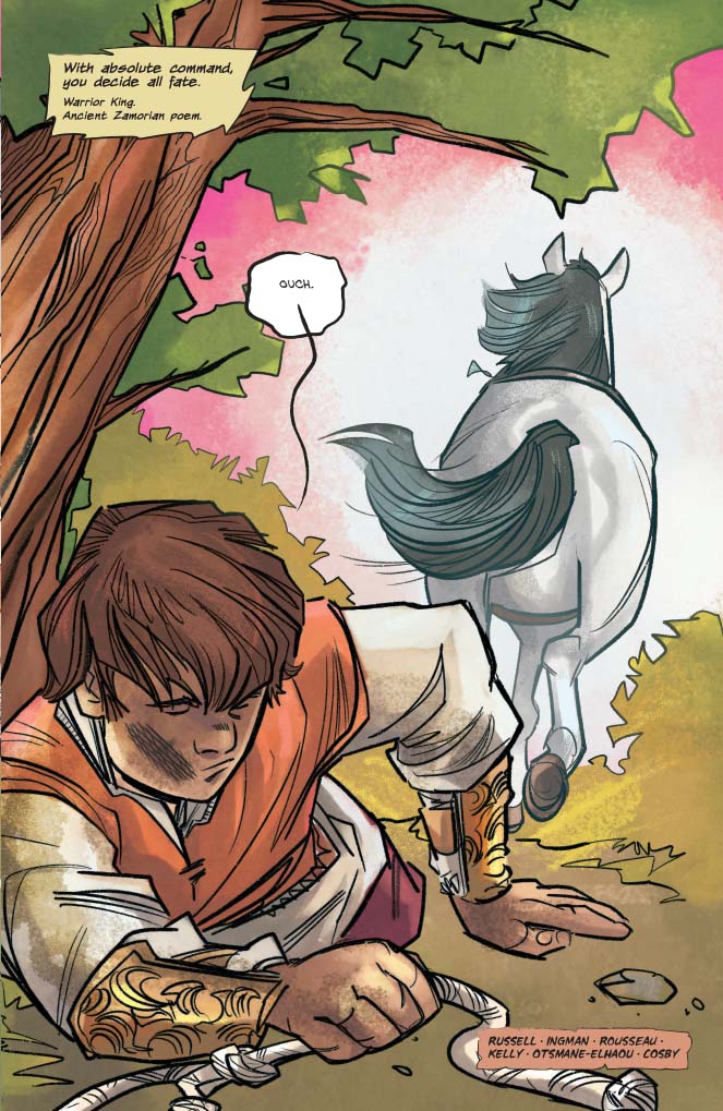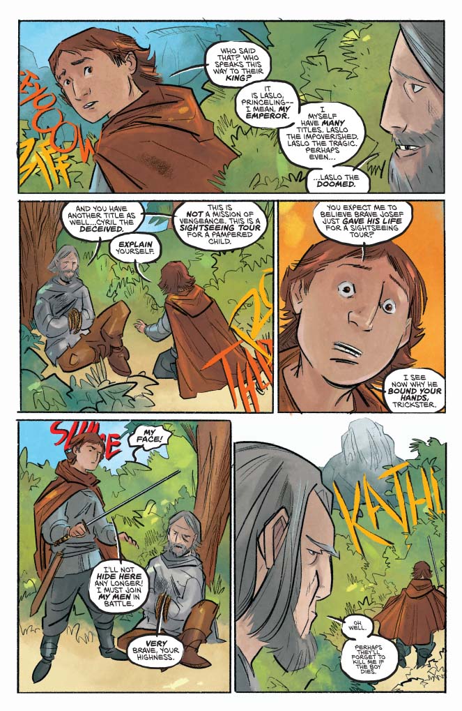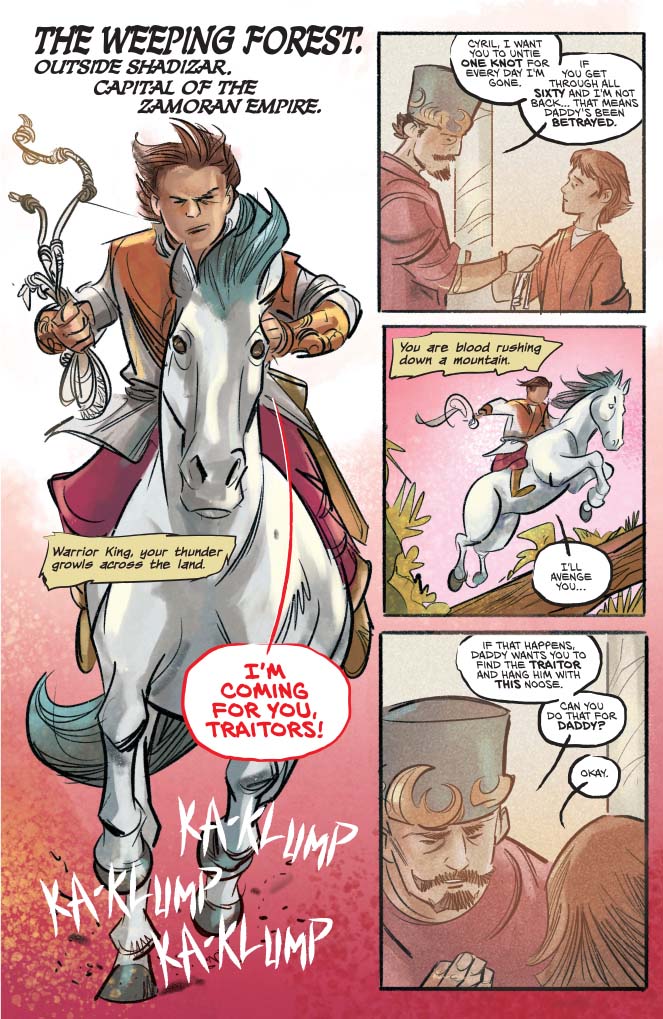 Across that first year of Russell’s Red Sonja, the titular character lead the rag-tag Hyrkanians against a despotic king. With Red Sonja slaying Dragan the Magnificent in a climactic battle, his surviving son Prince Cyril has vowed revenge on the fiery-haired killer. Alongside co-writer Bryce Ingman and fan-favorite artist Craig Rousseau, Mark Russell chronicles that quest in Killing Red Sonja. Spiced with magic, humor, and more, it’s an indisposable companion to the main series.