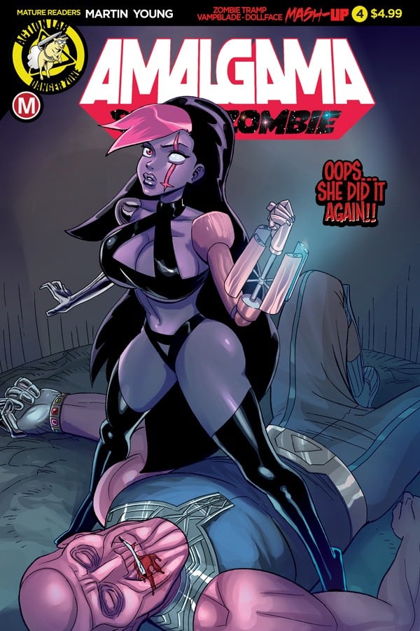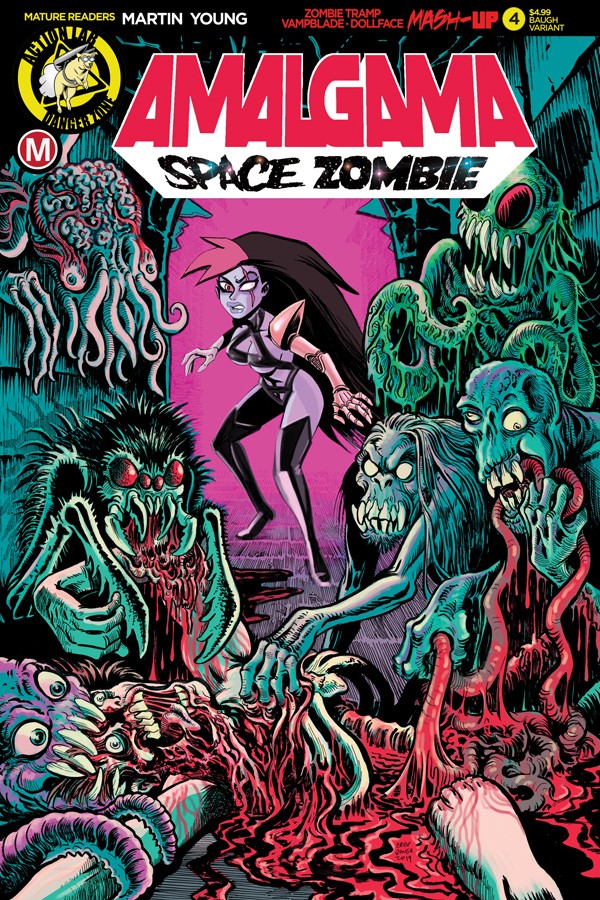 Born from the DNA of the Danger Doll Squad and then rocketed into space. Amalgama: Space Zombie’s first epic adventure concludes here, forging the legend of comic’s newest sci-fi superstar!!