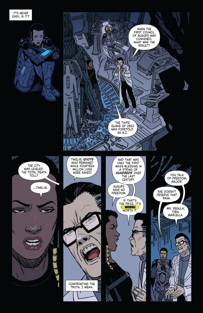 Augurs are pre-cognitive individuals enslaved and used to better society. They’re seen as abominations who are supposed to be turned in by their friends and family when discovered. They’re also abused and at times killed in the process to discover what they see. They also want their freedom.