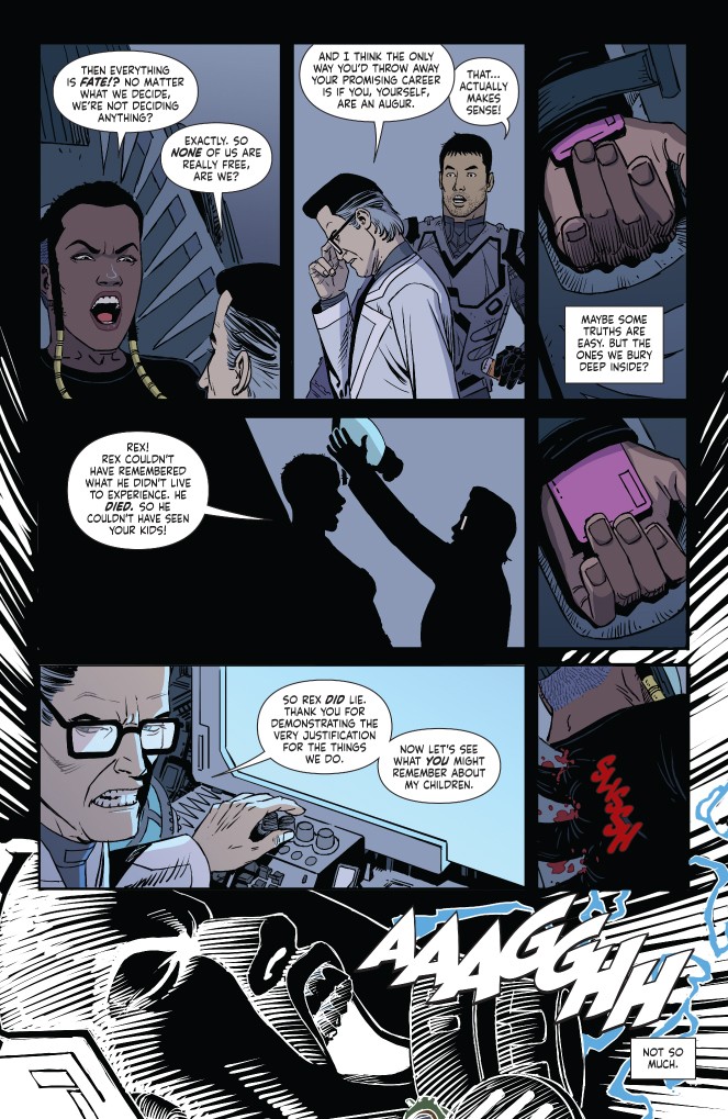 Marcella’s captured and a surprising truth is revealed, while the Augurs’ true selves bubble to the surface as they fight for their lives and freedom. Farrell gets a nasty surprise, and Jackson lets his single-minded determination get the better of him.