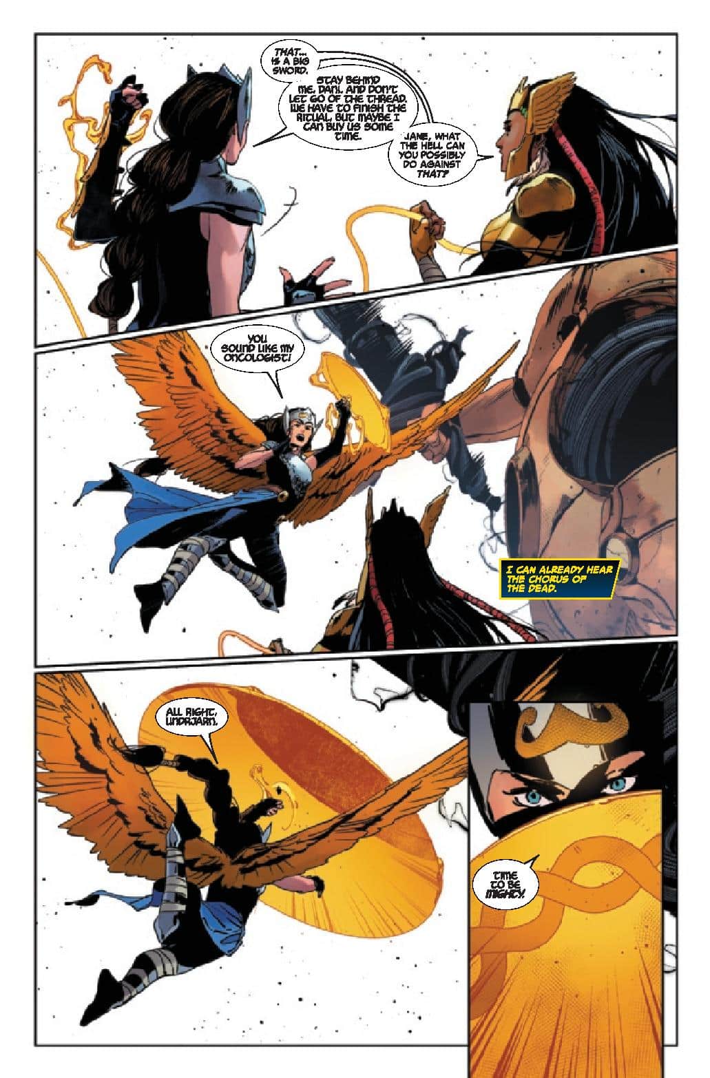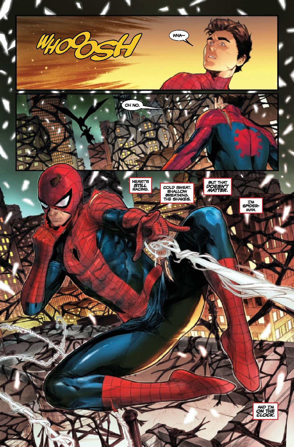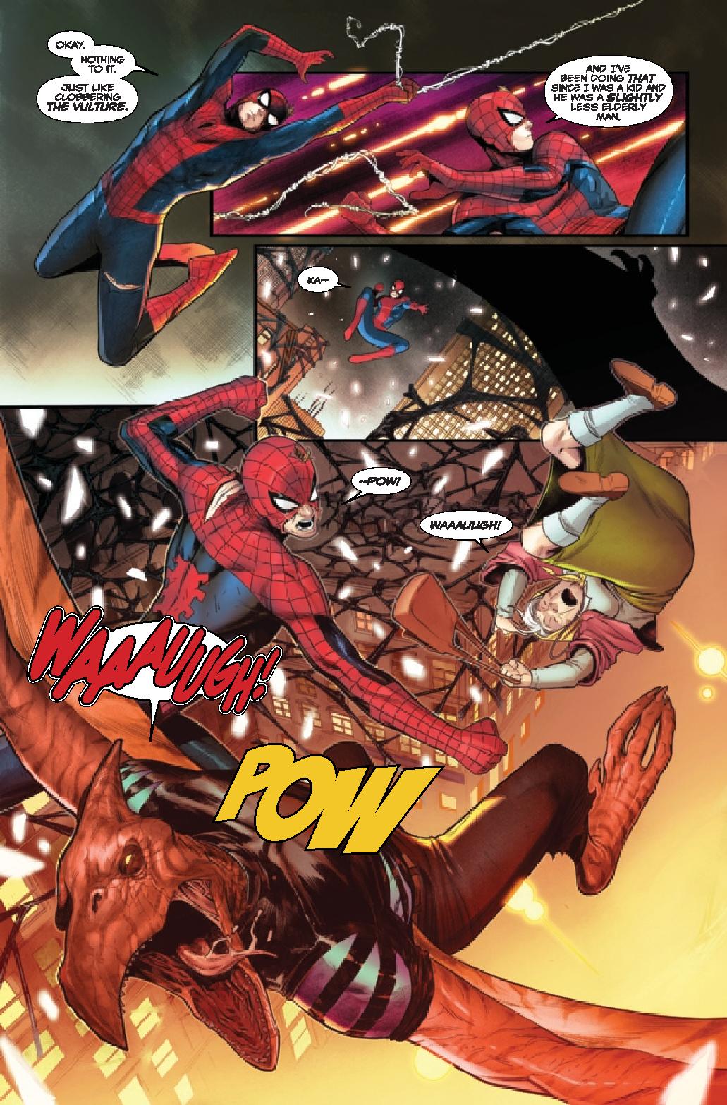 Cates focuses on these two’s battle so much that the rest of the heroes are generally and afterthought. They stand around and get one moment to look cool. But, beyond that, they don’t really do much and are a non-factor. For as much as various characters have been key in the main event, let alone the various tie-ins, they’re pretty much window dressing for this final issue. It’s an odd choice that takes some of the epic out of the nature of the battle.