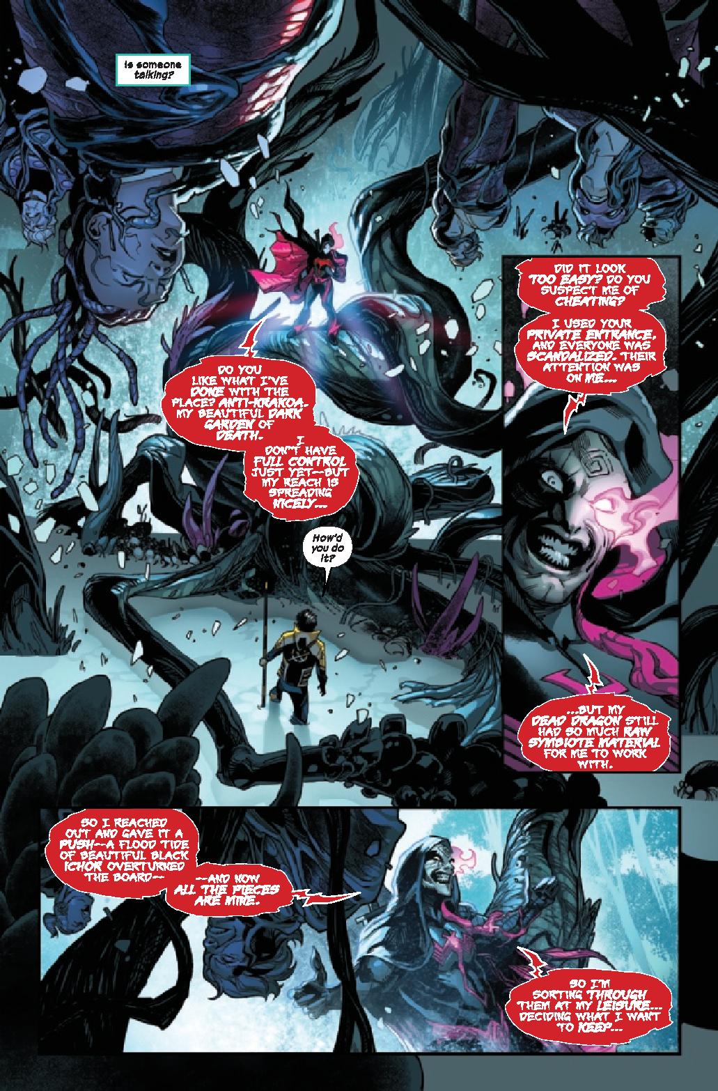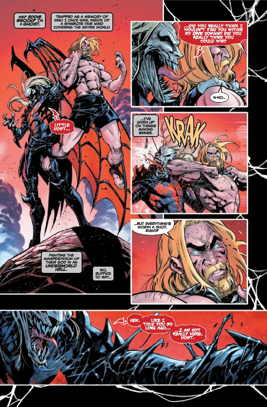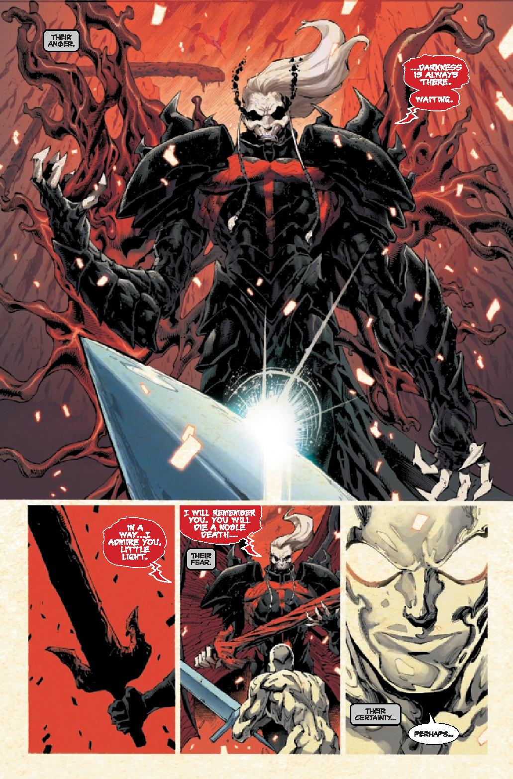 Donny Cates delivers a finale that has been built up for years. Eddie Brock, back with Venom and now the Enigma Force, square off against Knull for the fate of everything. The issue is one giant drag out fight between the two that’s not really a contest. Much like their first meeting, this is a one-sided fight that echoes that opening battle. Cates doesn’t even make this close. It’s Eddie beating the living daylights into Knull and the darkness. And seriously, that’s about it.