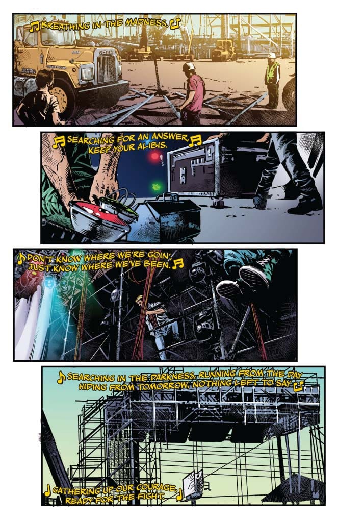 Picking up decades after the fall of civilization, humans are now an endangered species isolated to strongholds such as the central New Detroit. These undead are attracted to sound, so music and all related iconography have been banned. Especially that of the greatest band in history. However, a group of teenagers are not going to live this way and set out on a quest to track down KISS! Who may ultimately be the ultimate weapon to turn the tide against the zombies! Sacks has described the series as a cocktail of Land of the Dead, A Quiet Place, Seven Samurai and even Footloose!